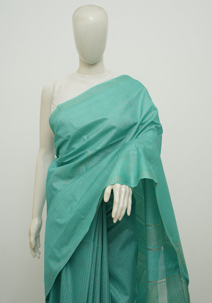 Sea Green Moonga Semi Tussar Saree With Printed Kalamkari Blouse