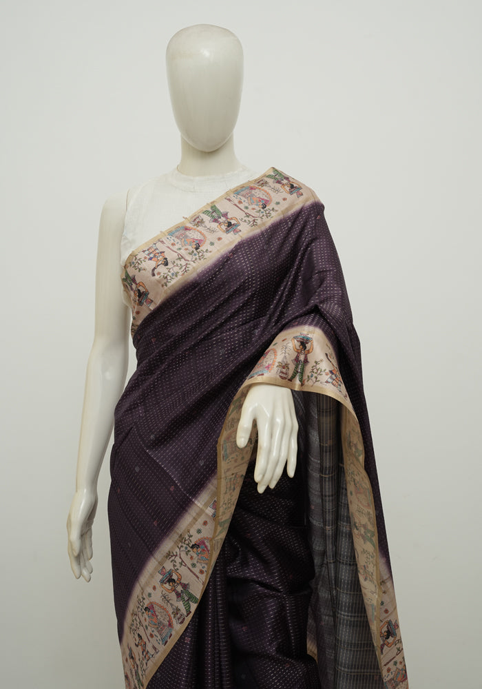 Purple and Beige Semi Tussar Saree with Kanta Printed Pallu and Blouse