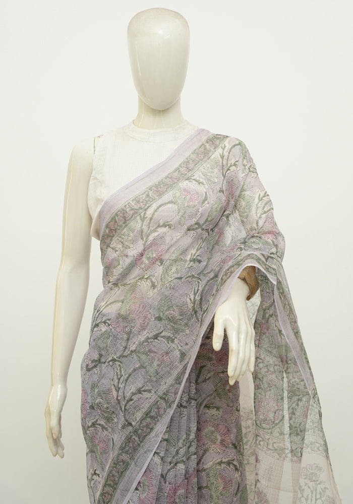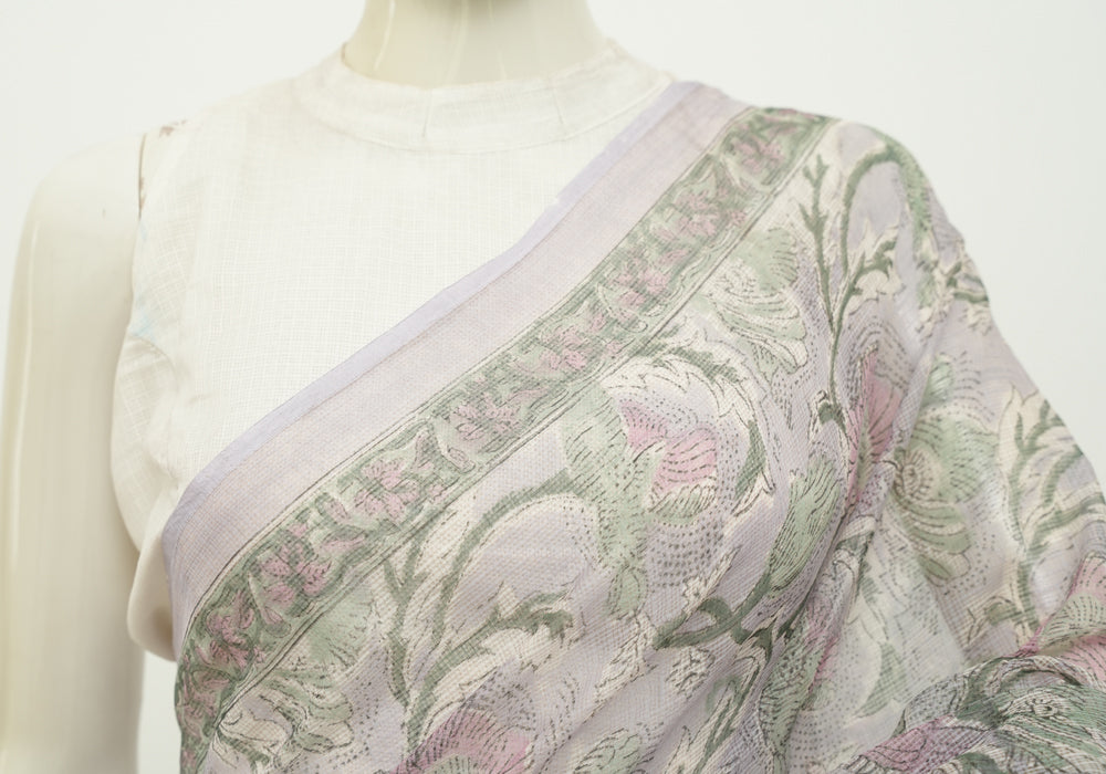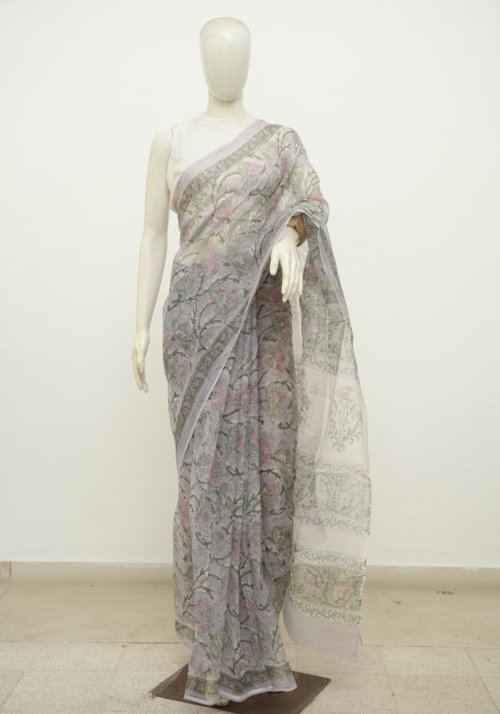 Lavender Block Printed Kota Saree