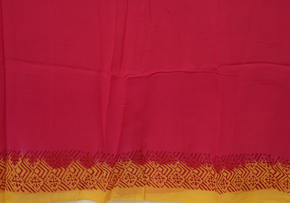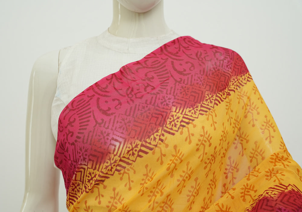 Mango Yellow and Red Block Printed Georgette Saree is OUT OF STOCK currently and available on pre-payment only. Order now for delivery within 2 weeks.