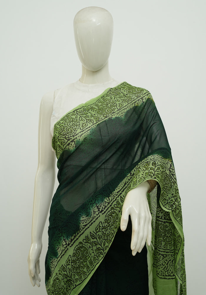 Pista Green Moonga Semi Tussar Saree With Printed Kalamkari Blouse