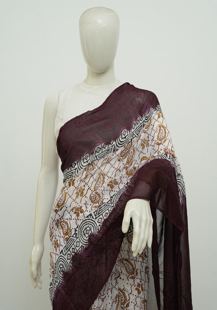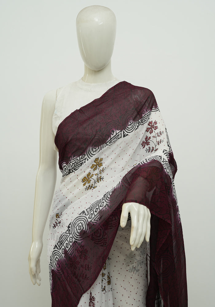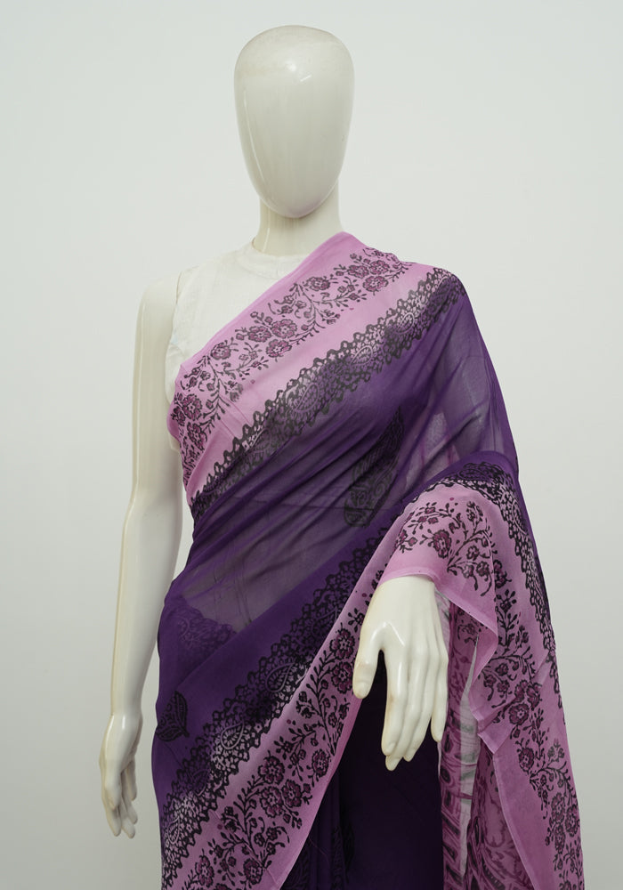 Purple Moonga Semi Tussar Saree With Printed Kalamkari Blouse
