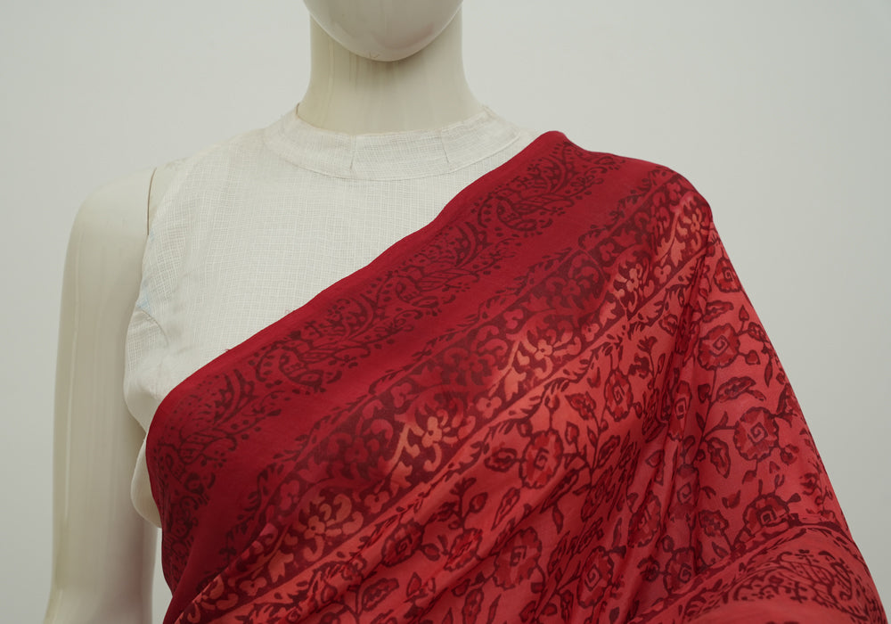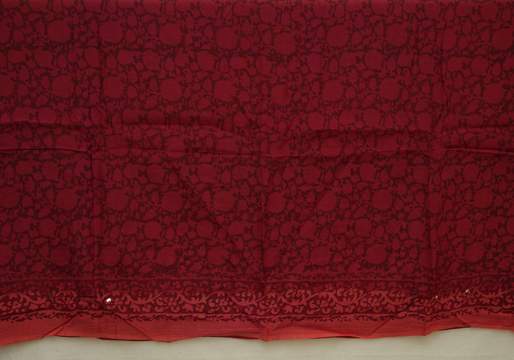 Red Block Printed Chennur Silk Saree with Mirror Work is OUT OF STOCK currently and available on pre-payment only. Order now for delivery within 2 weeks.