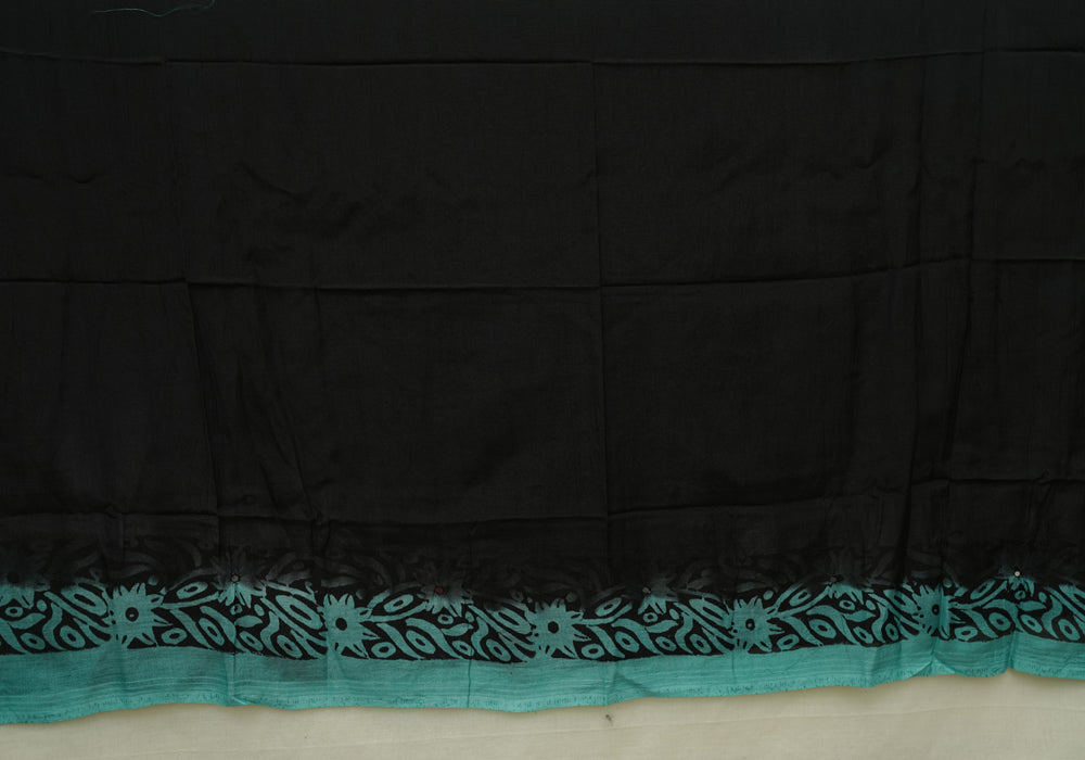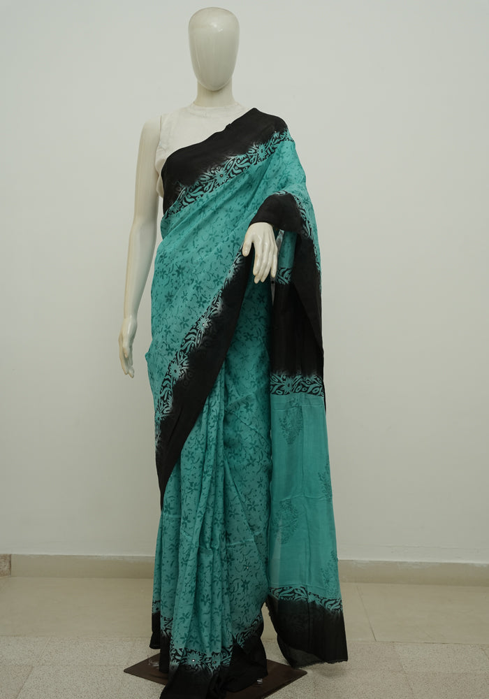 Sea Green and Black Block Printed Chennur Silk Saree with Mirror Work is OUT OF STOCK currently and available on pre-payment only. Order now for delivery within 2 weeks.