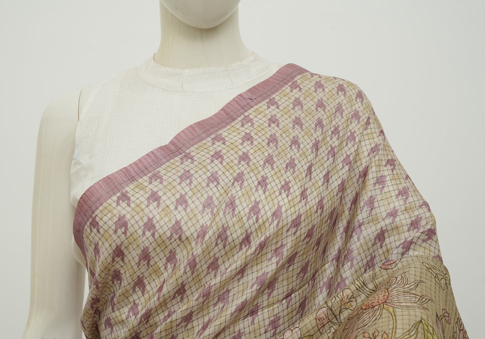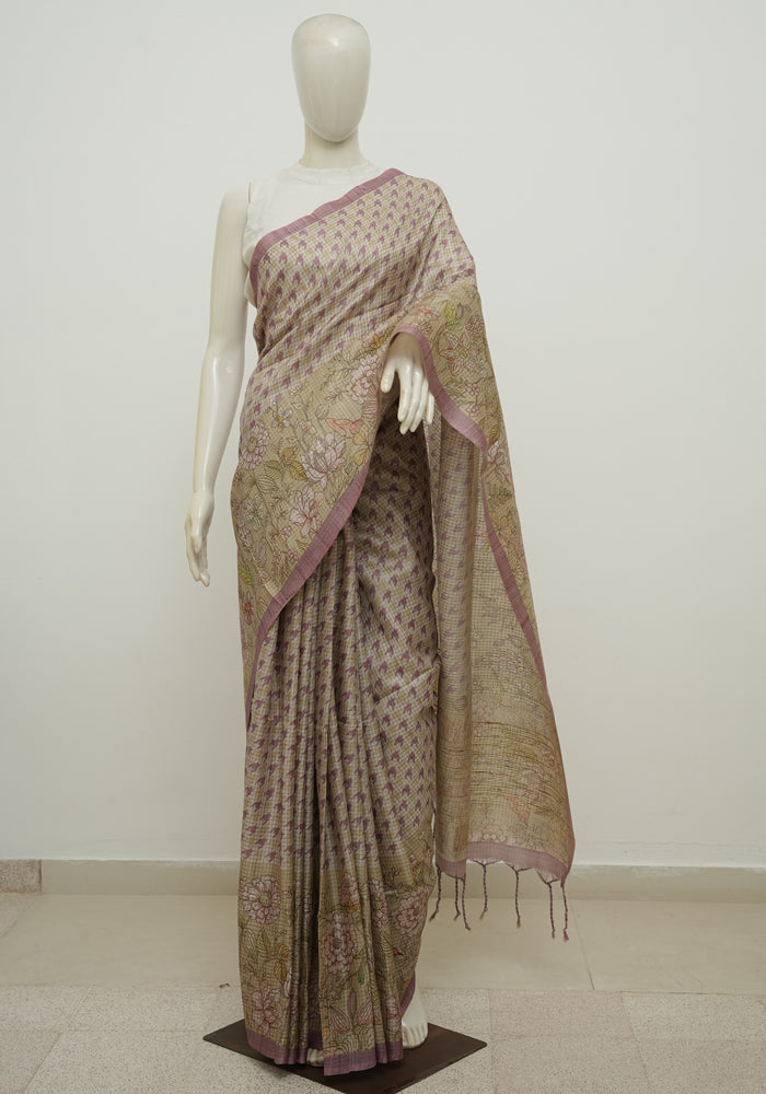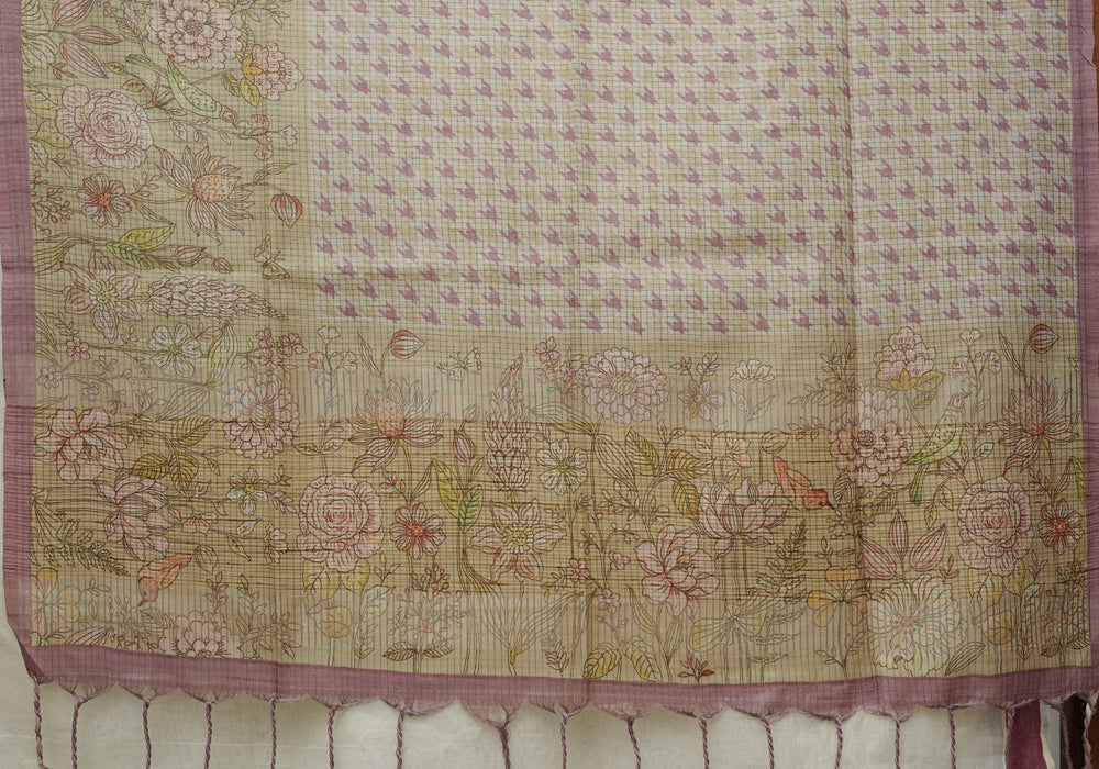 Beige and Light Green Printed Semi Tussar Saree is OUT OF STOCK currently and available on pre-payment only. Order now for delivery within 2 weeks.