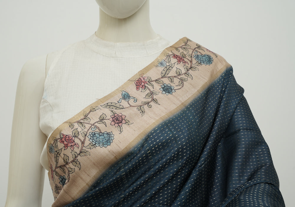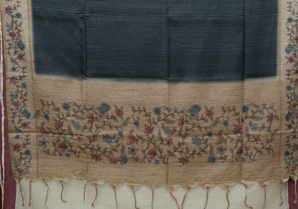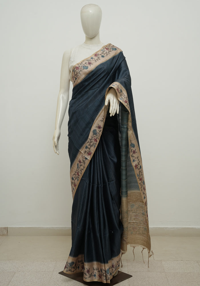 Blue and Beige Semi Tussar Saree with Kanta Printed Pallu and Blouse is OUT OF STOCK currently and available on pre-payment only. Order now for delivery within 2 weeks.