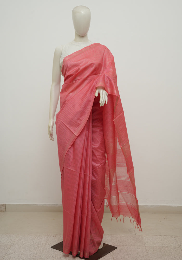 Moonga Semi Tussar Saree with Printed Kalamkari Blouse
