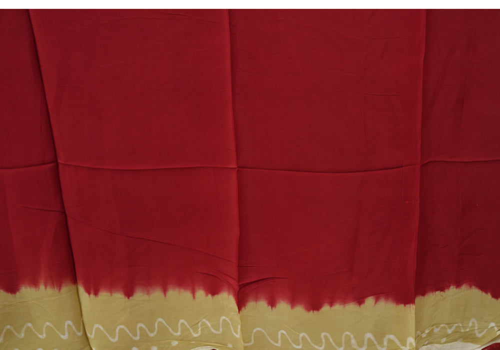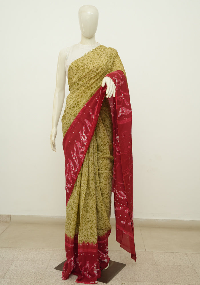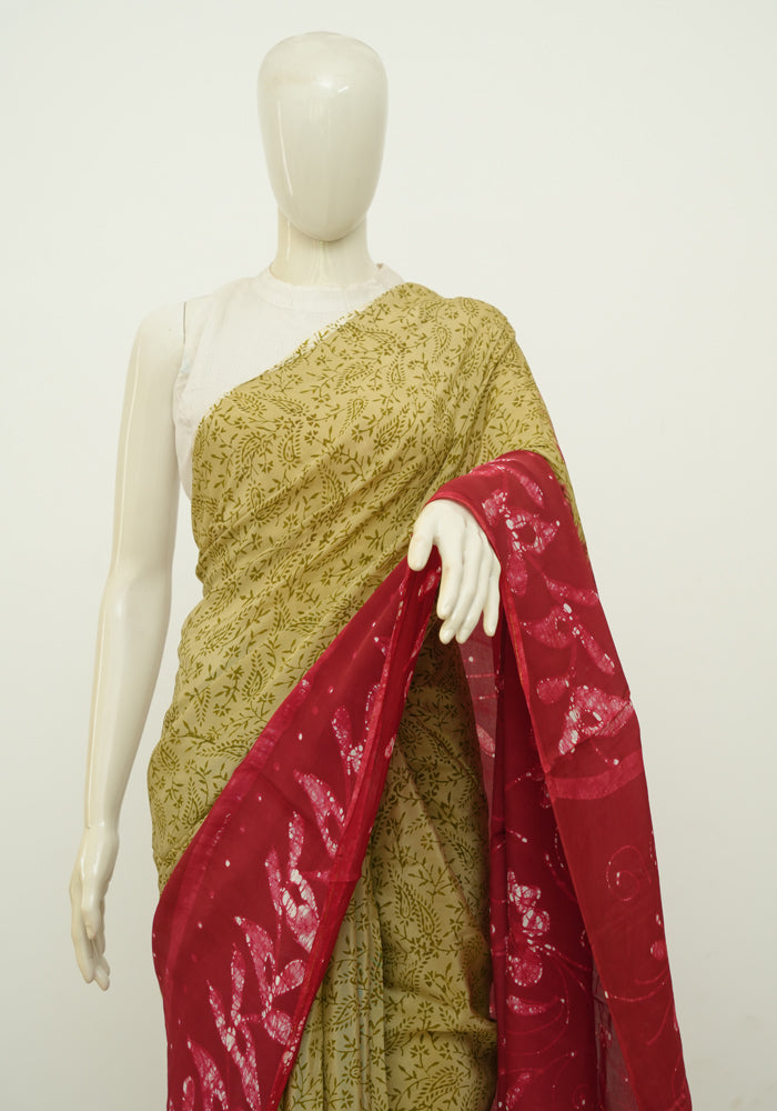 Light Brown and Maroon Batik Crepe Saree