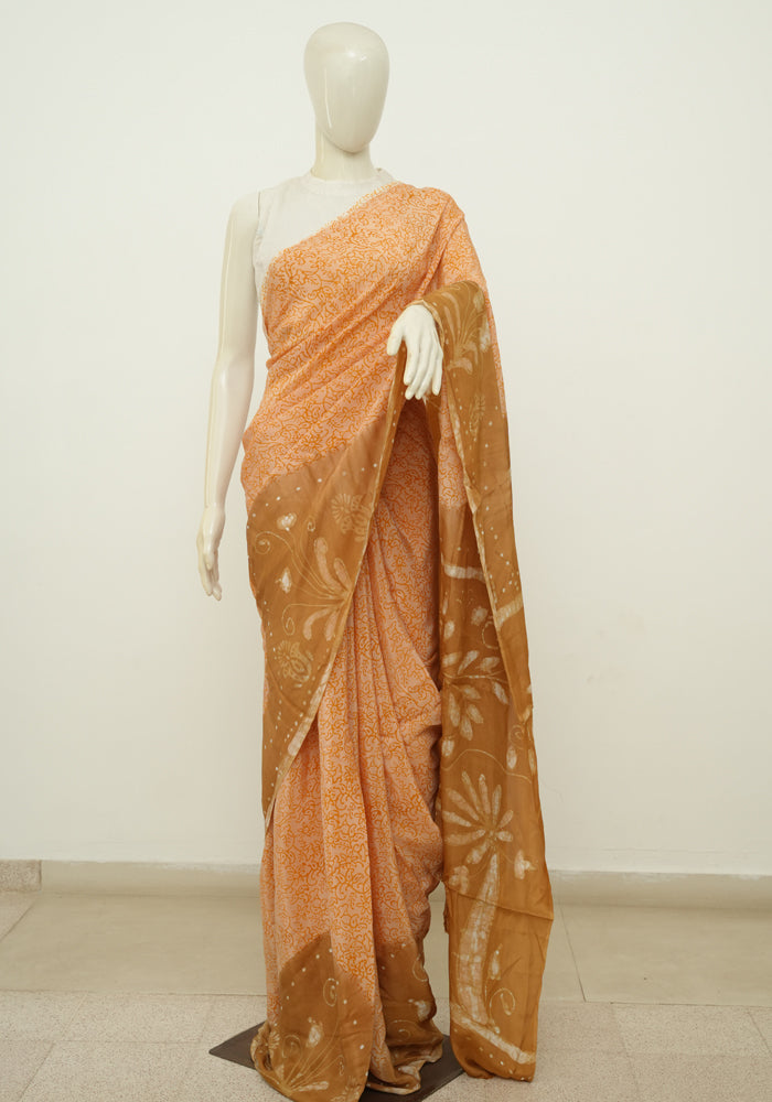 Light Brown Batik Crepe Saree is OUT OF STOCK currently and available on pre-payment only. Order now for delivery within 2 weeks.