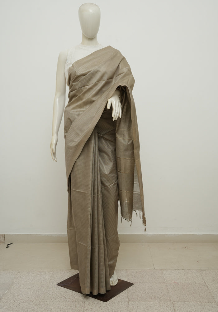 Light Brown Moonga Semi Tussar Saree With Printed Kalamkari Blouse