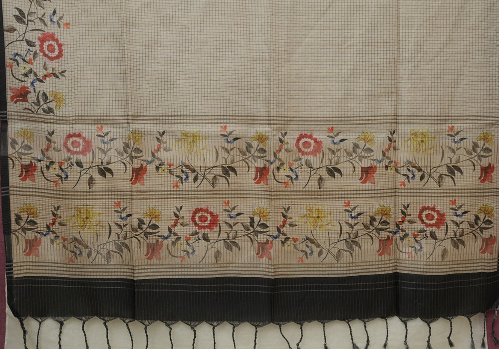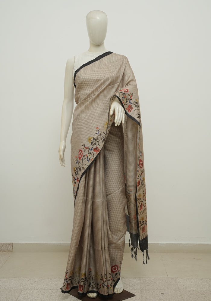 Light Green and Black Semi Tussar Saree With Digital Print is OUT OF STOCK currently and available on pre-payment only. Order now for delivery within 2 weeks.