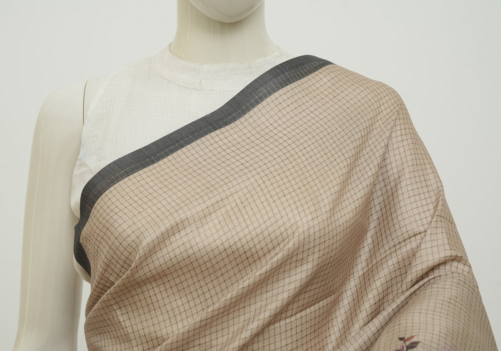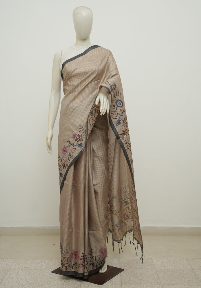 Light Green and Grey Semi Tussar Saree With Digital Print is OUT OF STOCK currently and available on pre-payment only. Order now for delivery within 2 weeks.