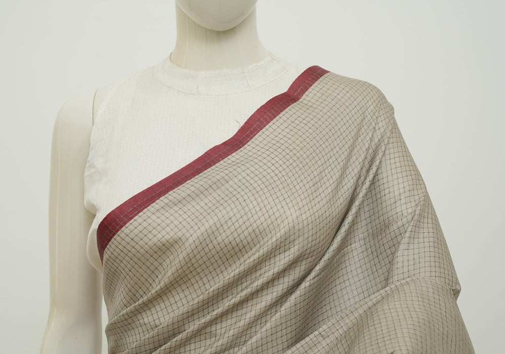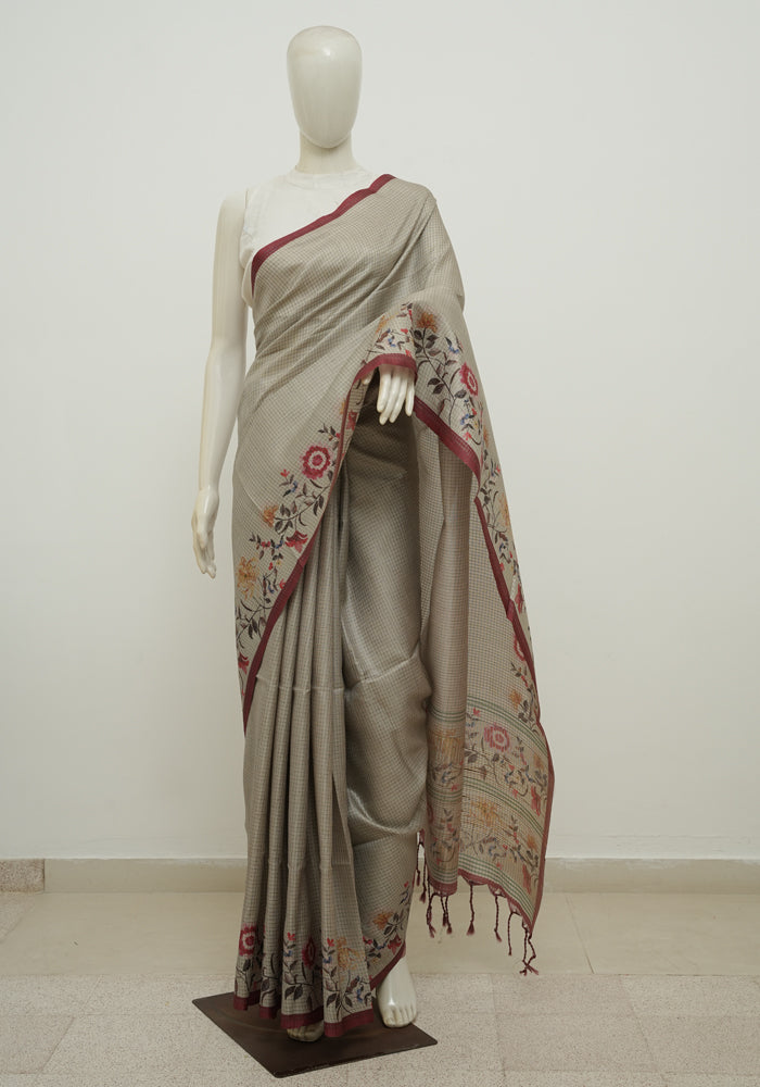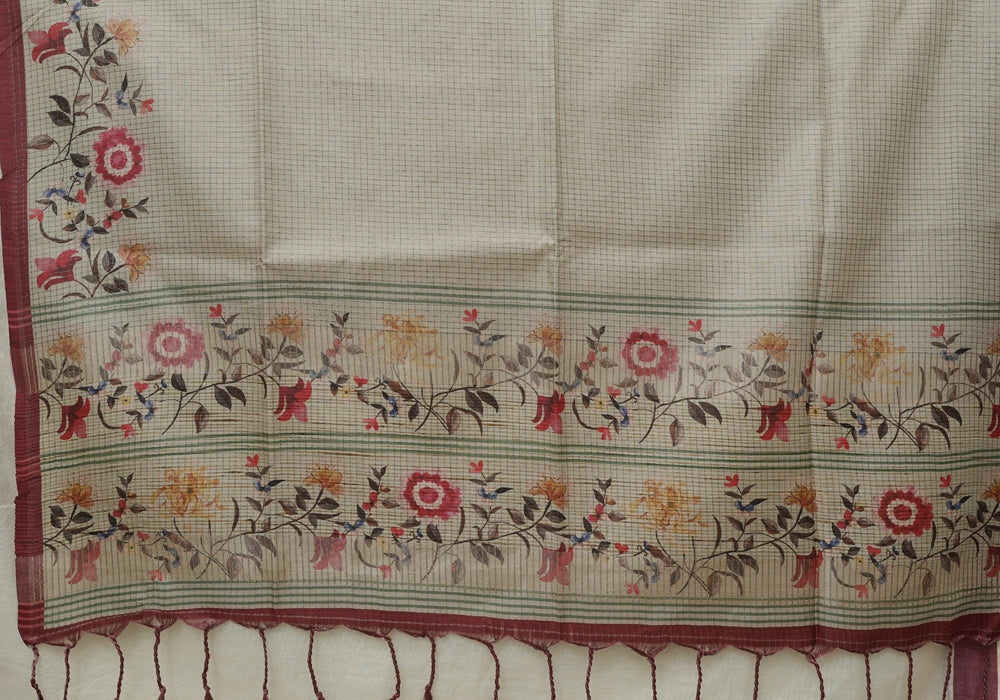 Light Green and Maroon Semi Tussar Saree With Digital Print is OUT OF STOCK currently and available on pre-payment only. Order now for delivery within 2 weeks.