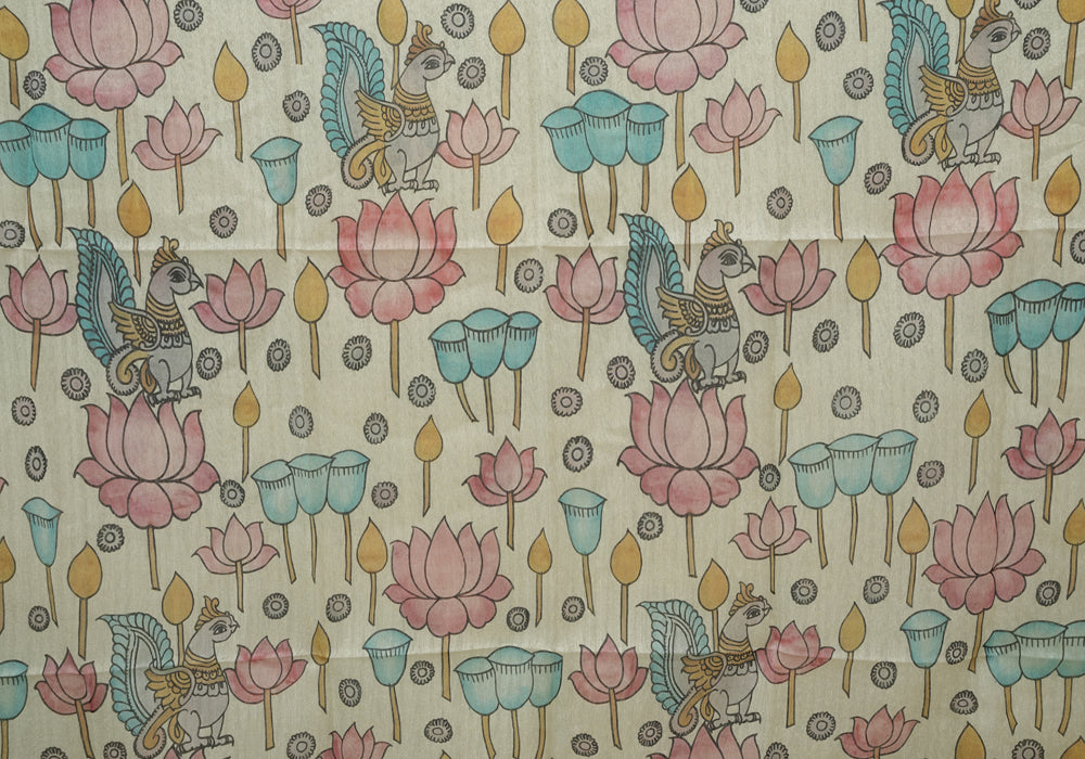 Moonga Semi Tussar Saree with Printed Kalamkari Blouse