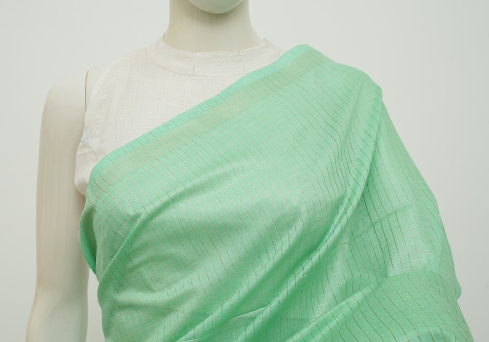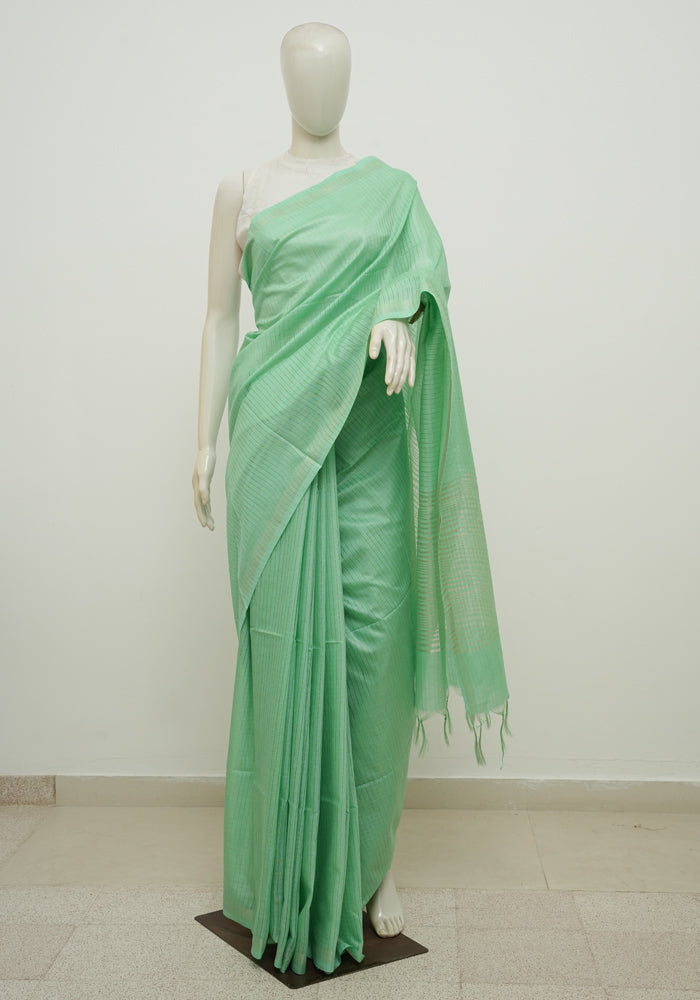 Light Green Moonga Semi Tussar Saree With Printed Kalamkari Blouse