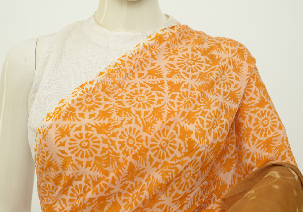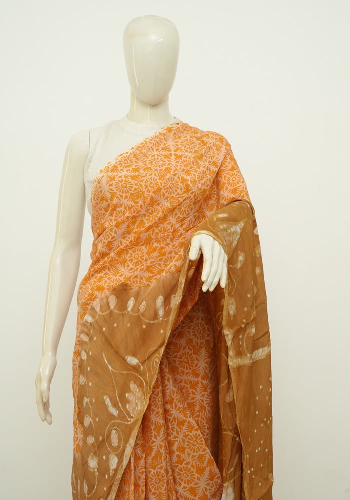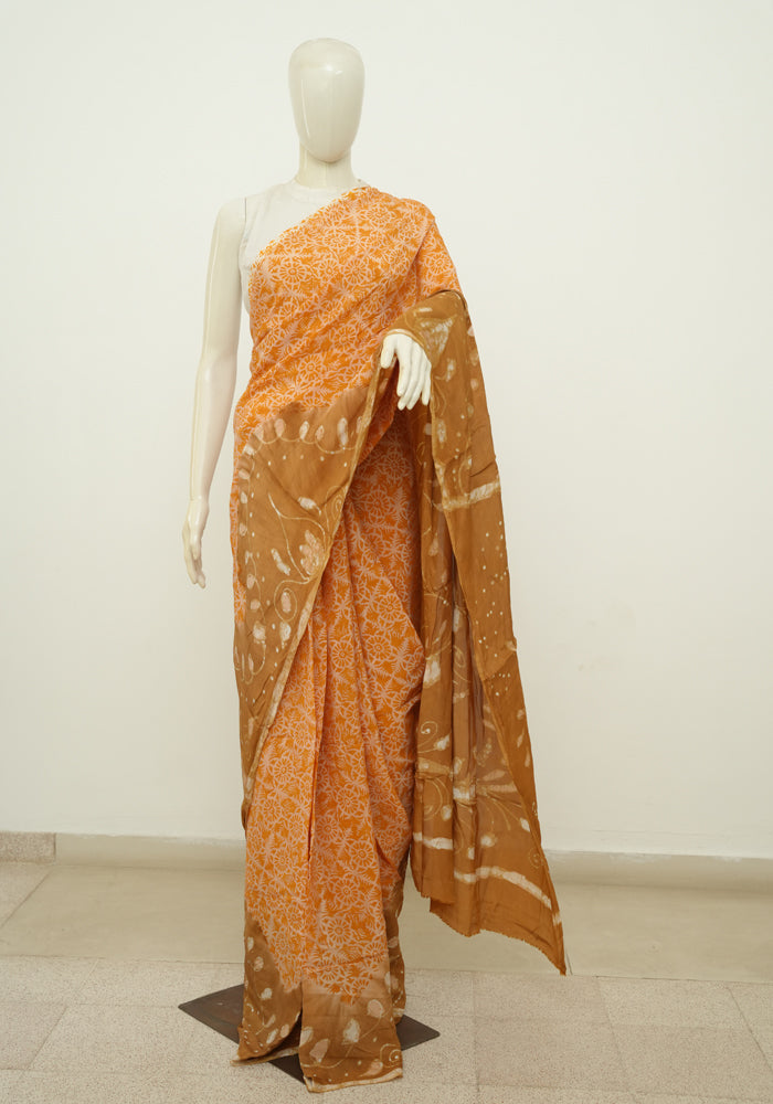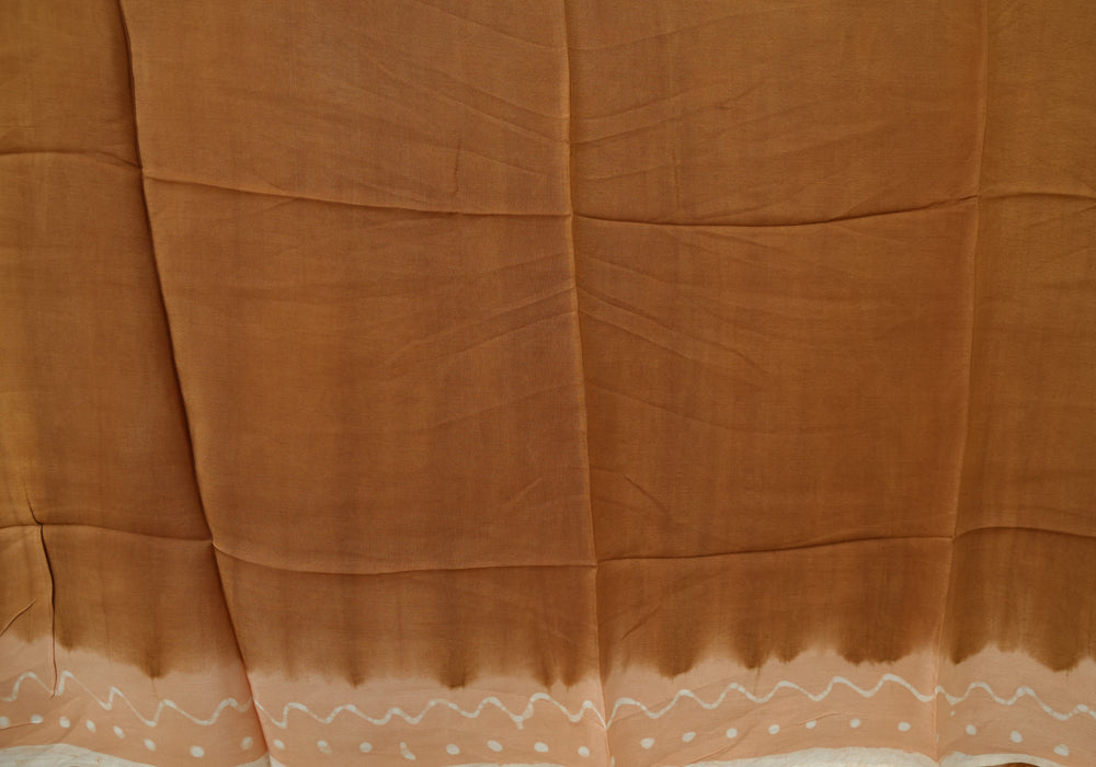 Light Orange and Light Brown Batik Crepe Saree is OUT OF STOCK currently and available on pre-payment only. Order now for delivery within 2 weeks.