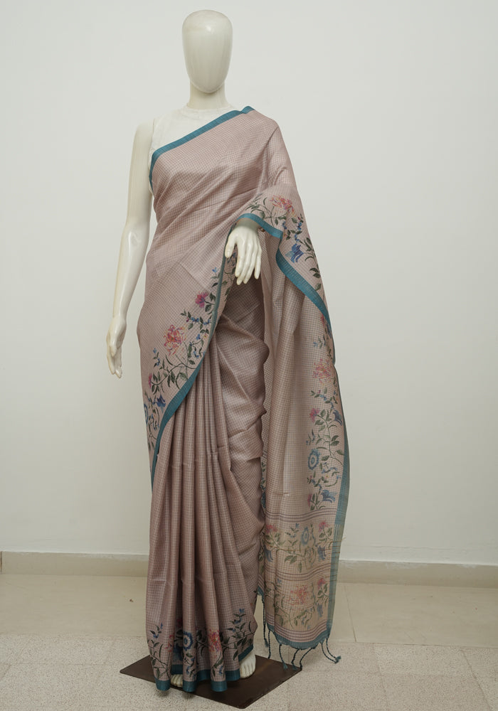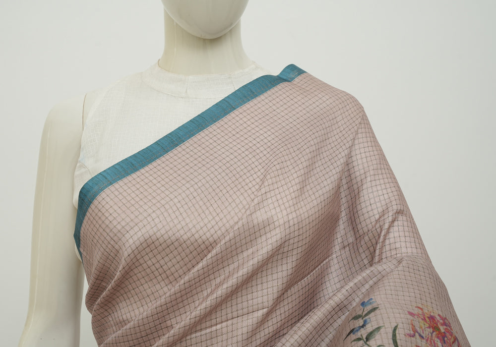 Light Pink and Blue Semi Tussar Saree With Digital Print