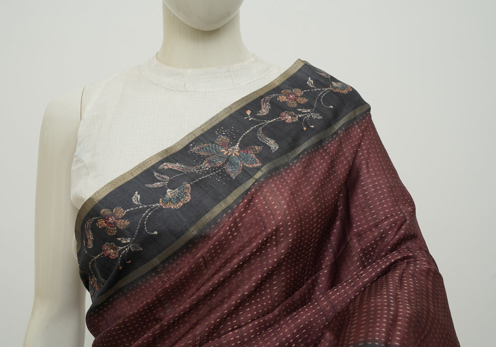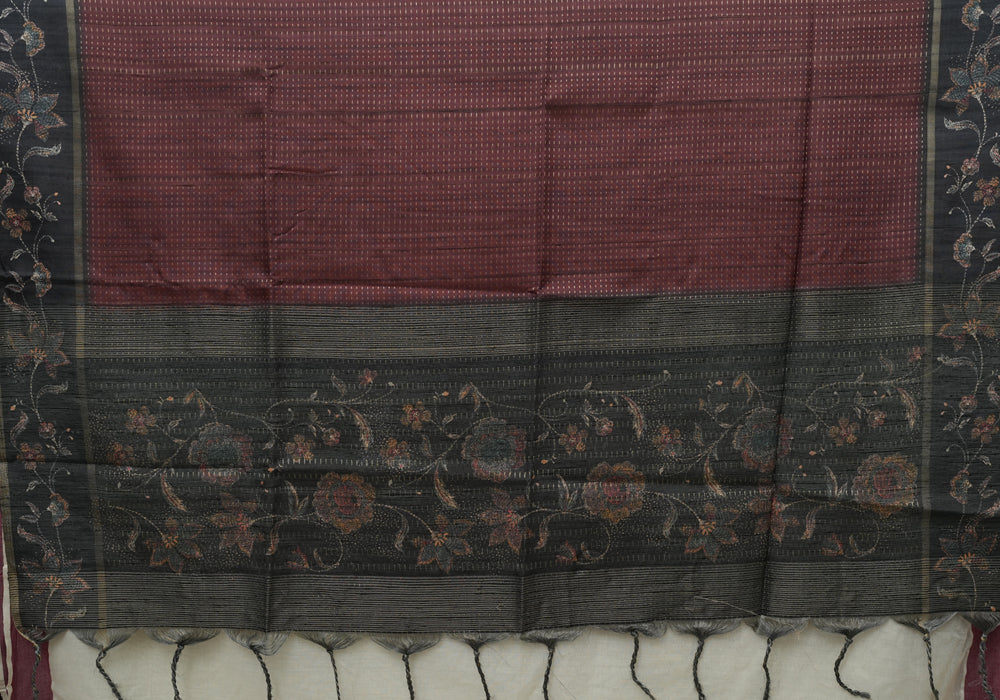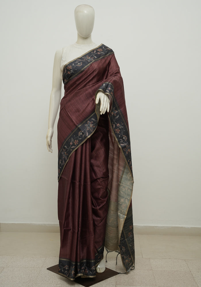 Maroon and Black Semi Tussar Saree with Kanta Printed Pallu and Blouse