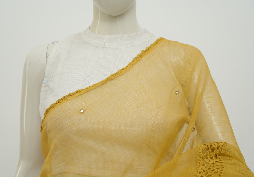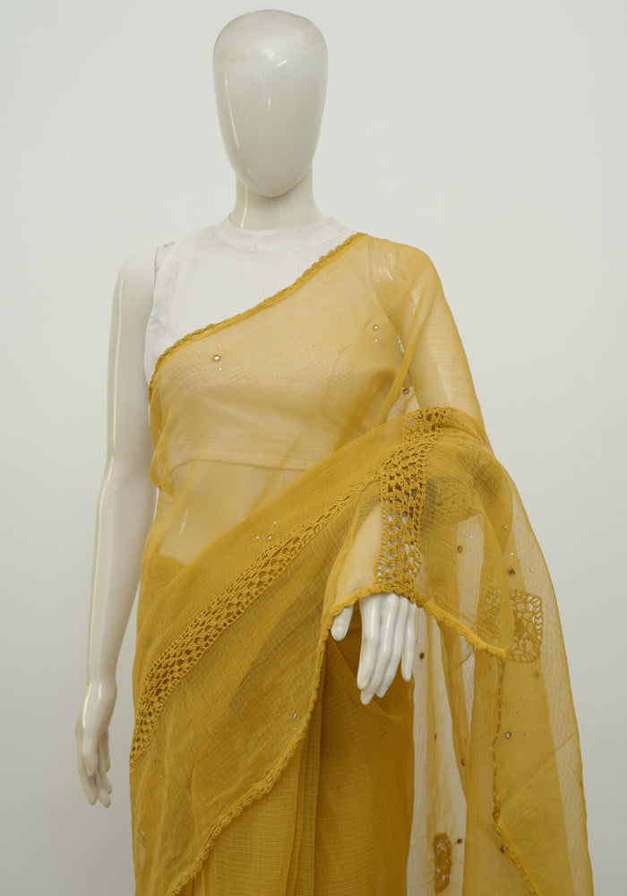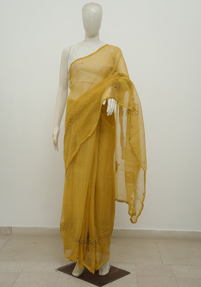 Mustard Yellow Kota Saree With Mirror and Crochet Work