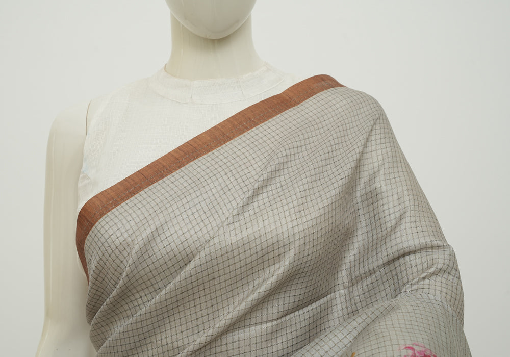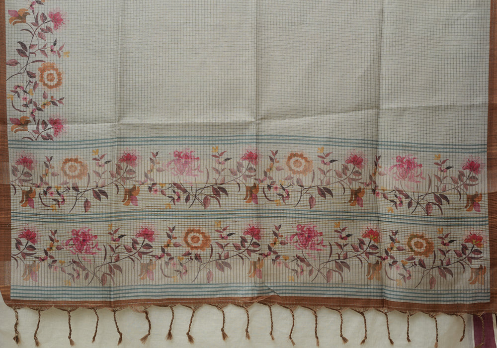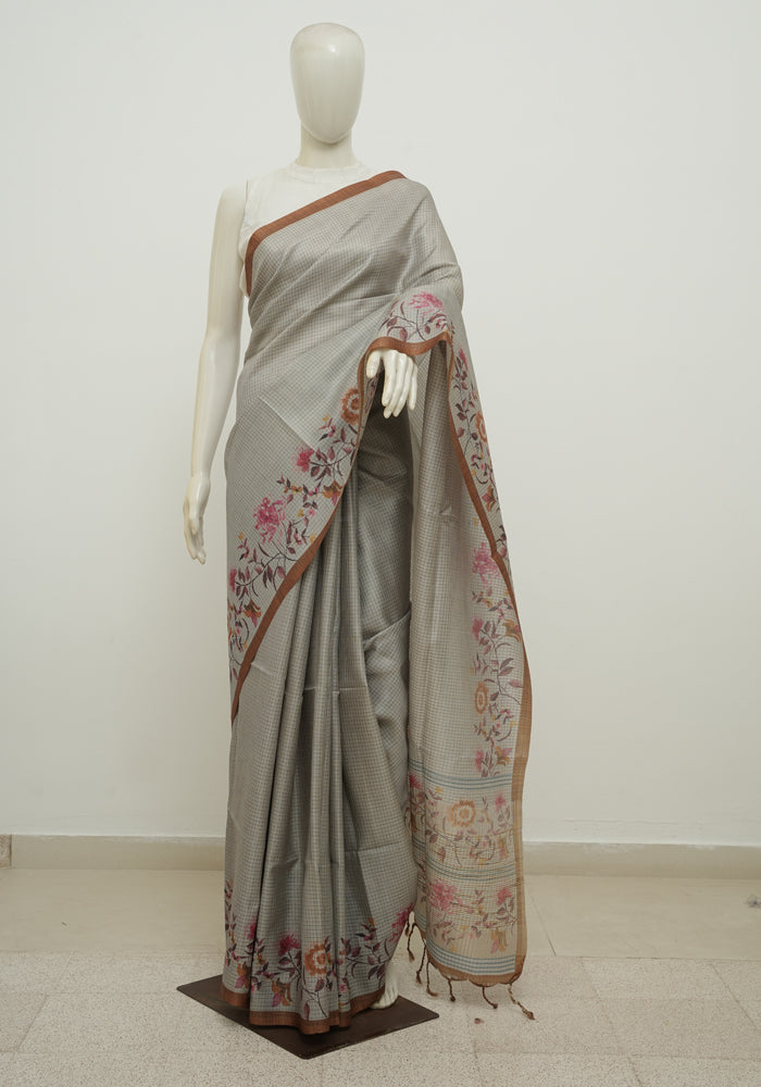 Pastel Green and Brown Semi Tussar Saree With Digital Print