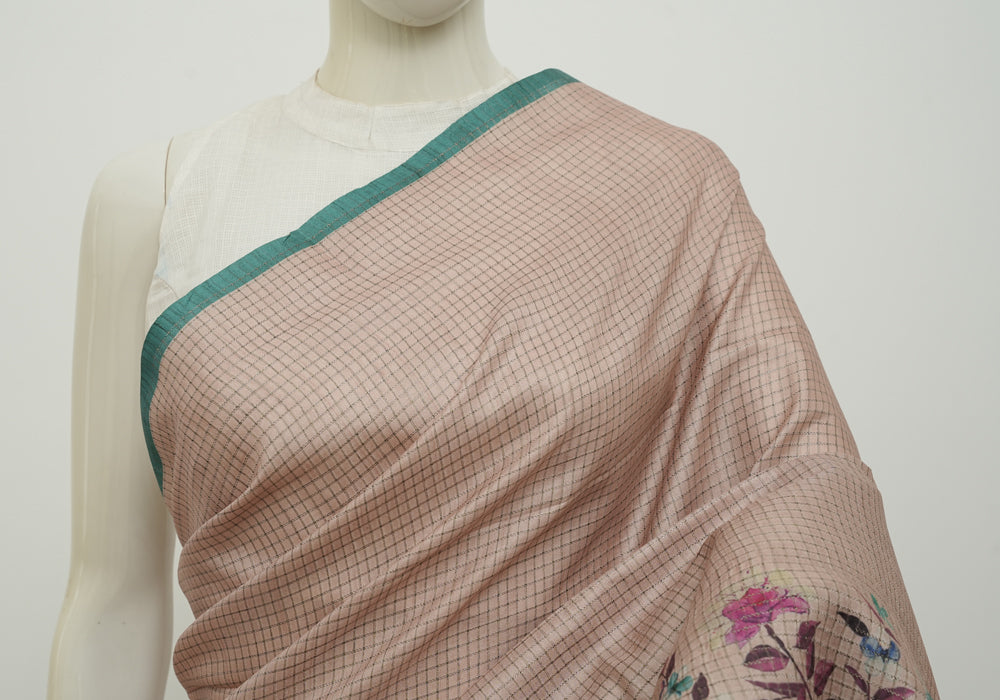 Pastel Pink and Teal Green Semi Tussar Saree With Digital Print is OUT OF STOCK currently and available on pre-payment only. Order now for delivery within 2 weeks.