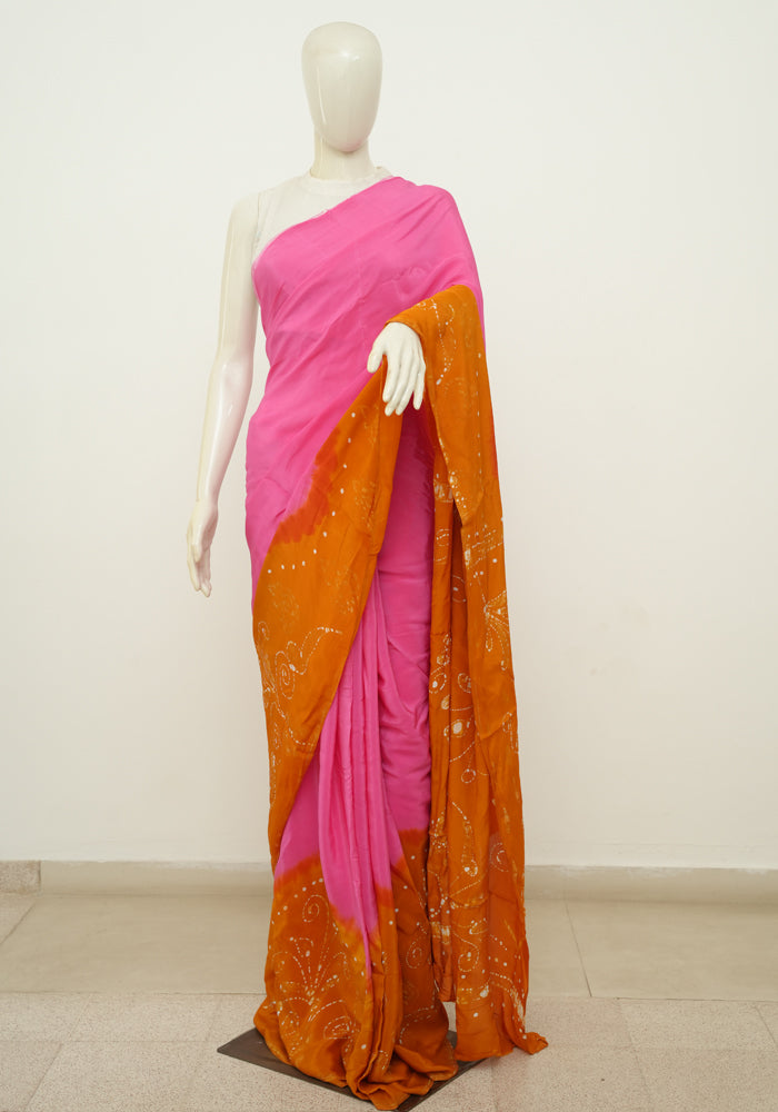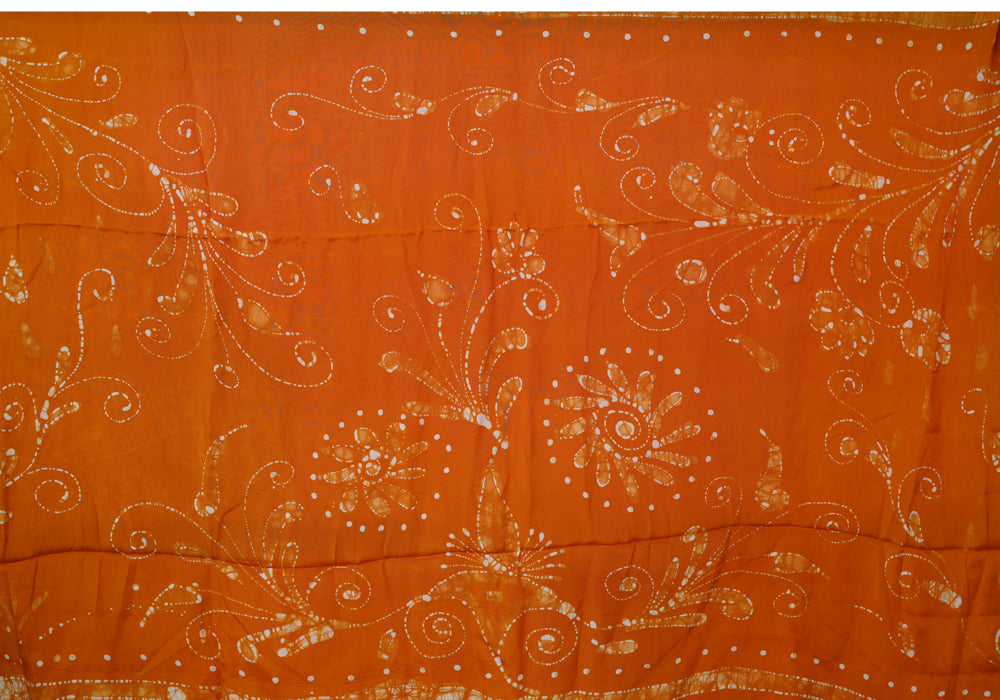 Pink and Rust Orange Batik Crepe Saree