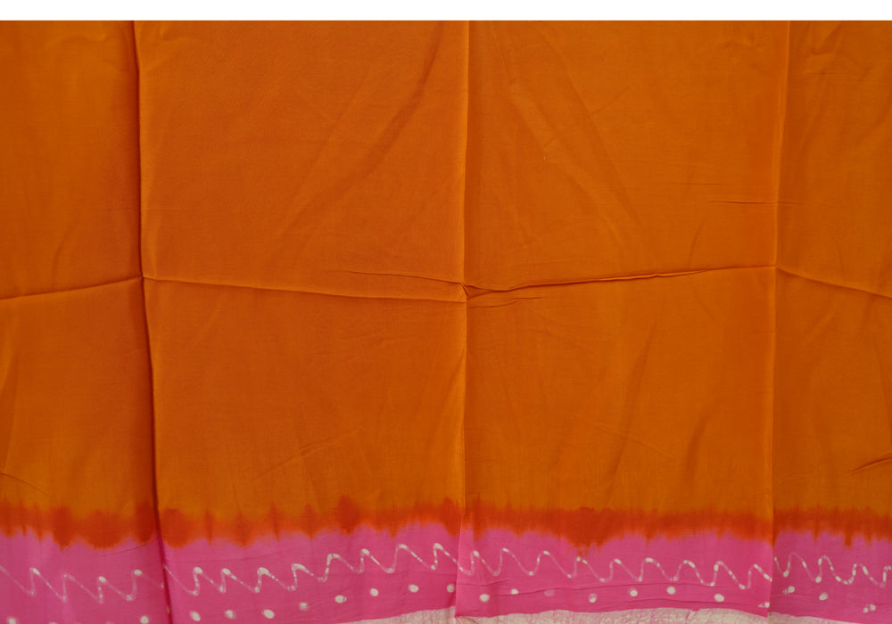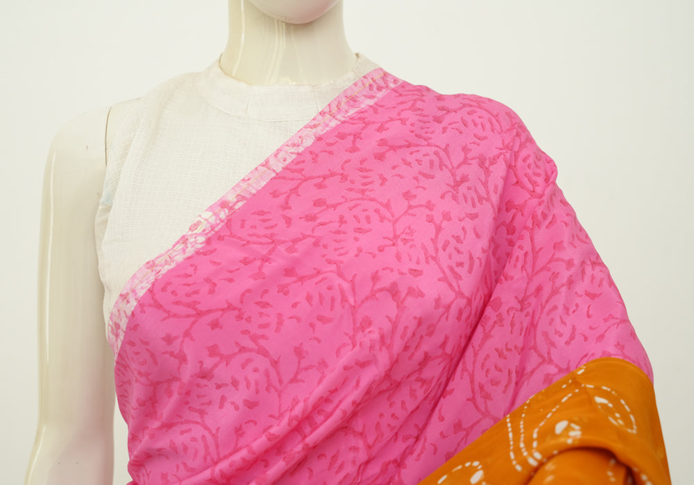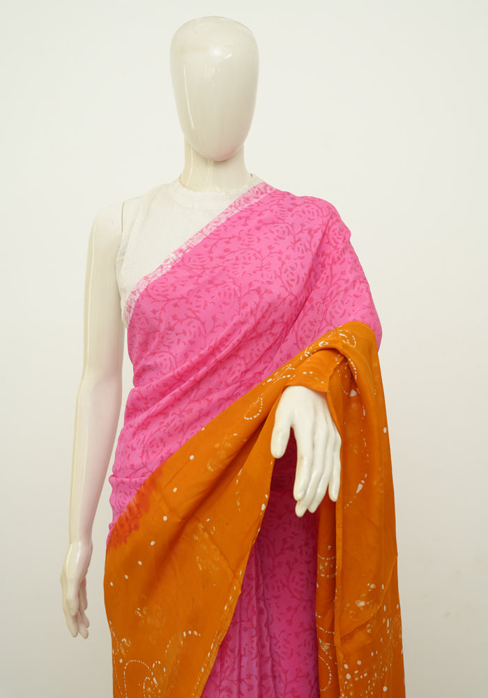 Pink and Rust Orange Batik Crepe Saree