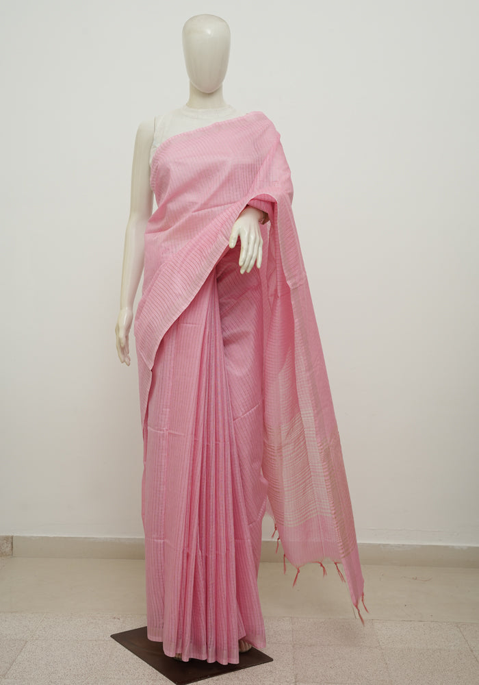Pink Moonga Semi Tussar Saree With Printed Kalamkari Blouse
