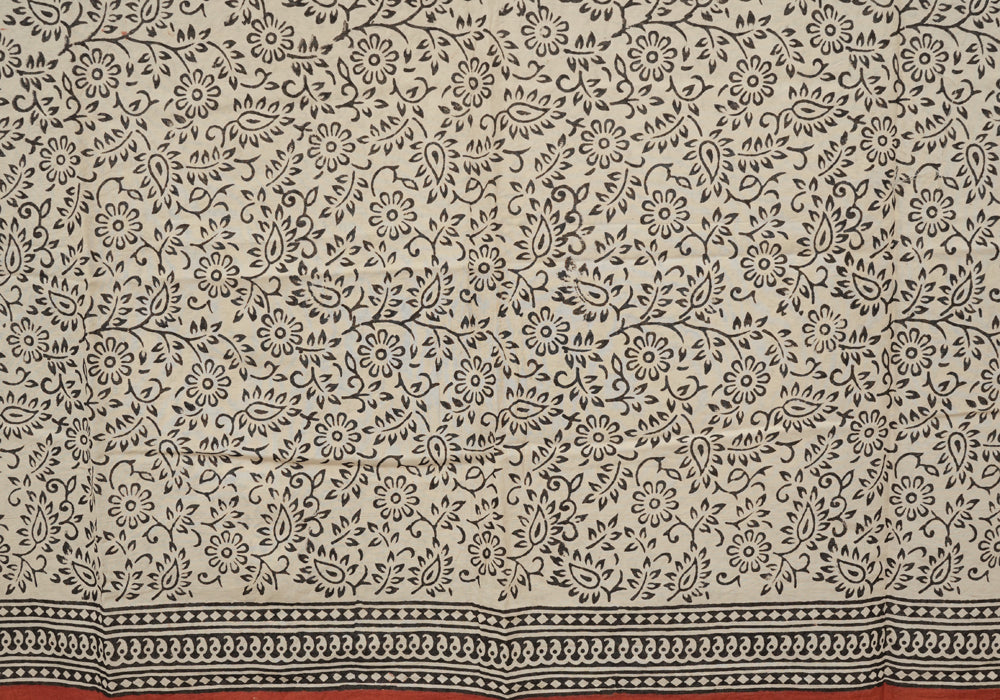 Red and Black Block Printed Kota Saree