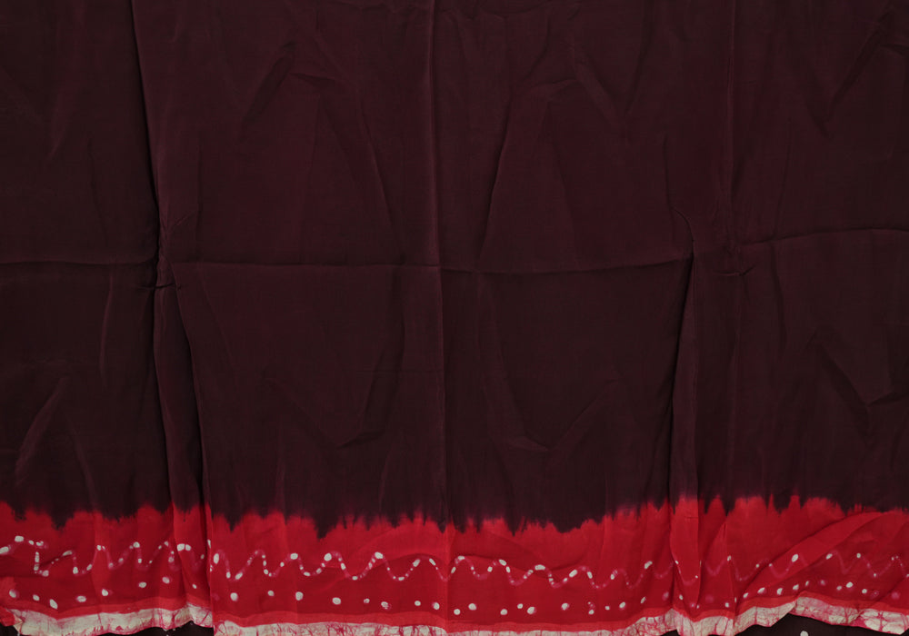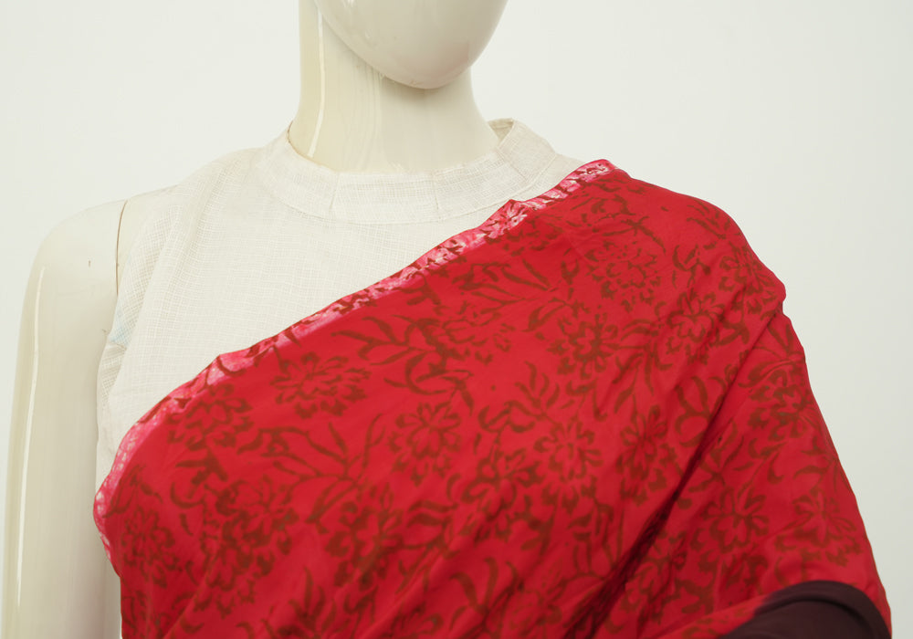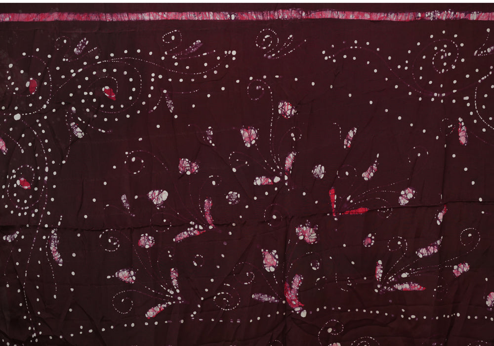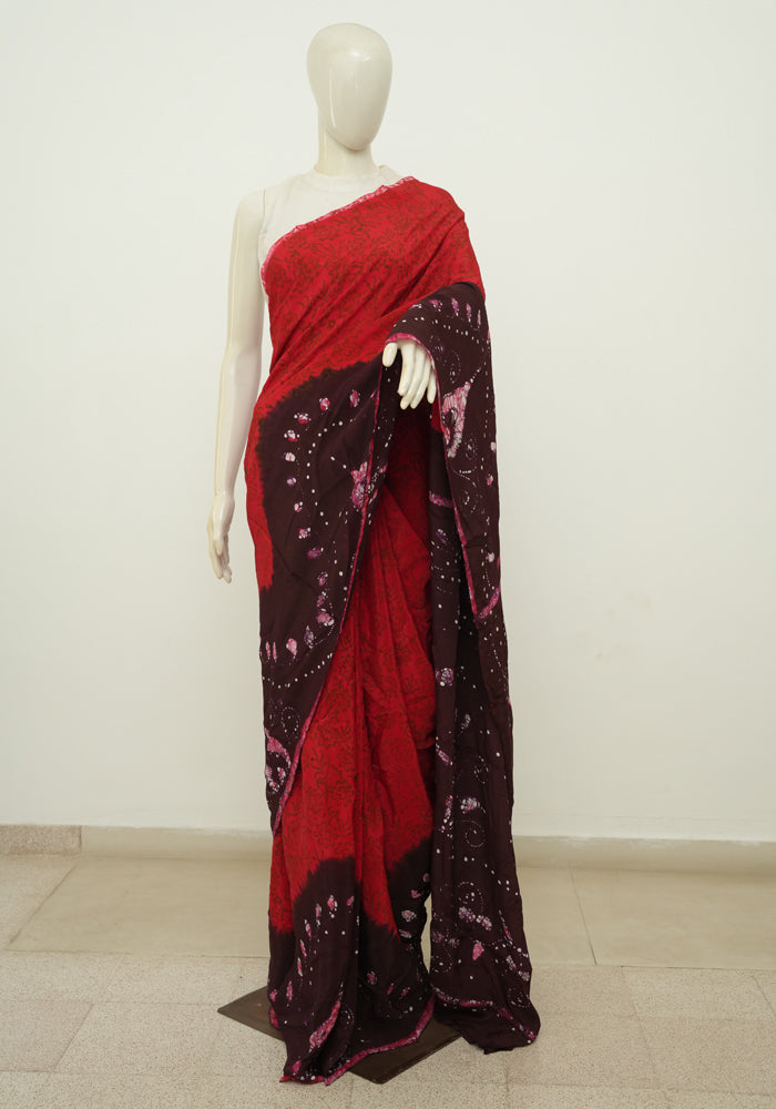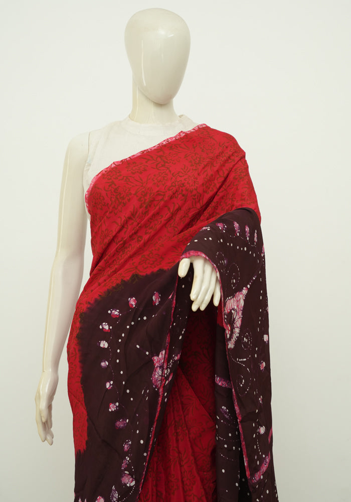 Red and Jamun Red Batik Crepe Saree