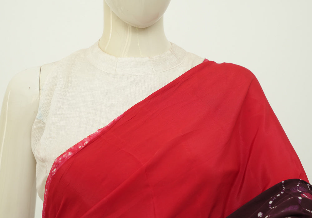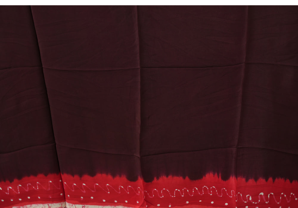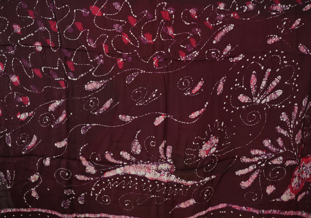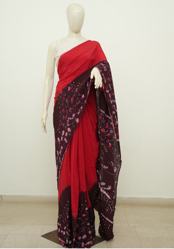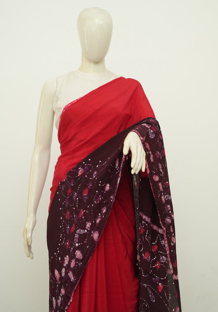 Red and Jamun Red Batik Crepe Saree is OUT OF STOCK currently and available on pre-payment only. Order now for delivery within 2 weeks.