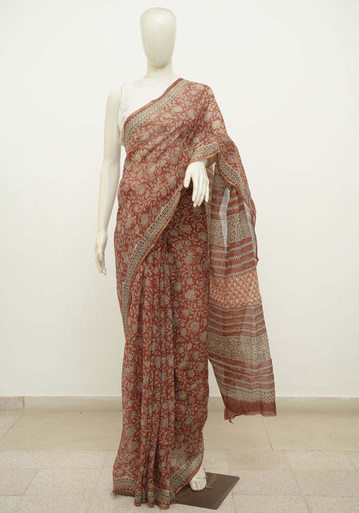 Red Block Printed Kota Saree is OUT OF STOCK currently and available on pre-payment only. Order now for delivery within 2 weeks.