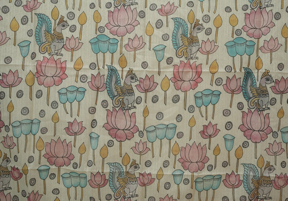 Moonga Semi Tussar Saree with Printed Kalamkari Blouse