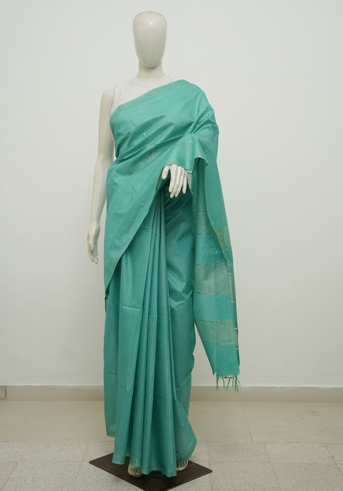 Sea Green Moonga Semi Tussar Saree With Printed Kalamkari Blouse