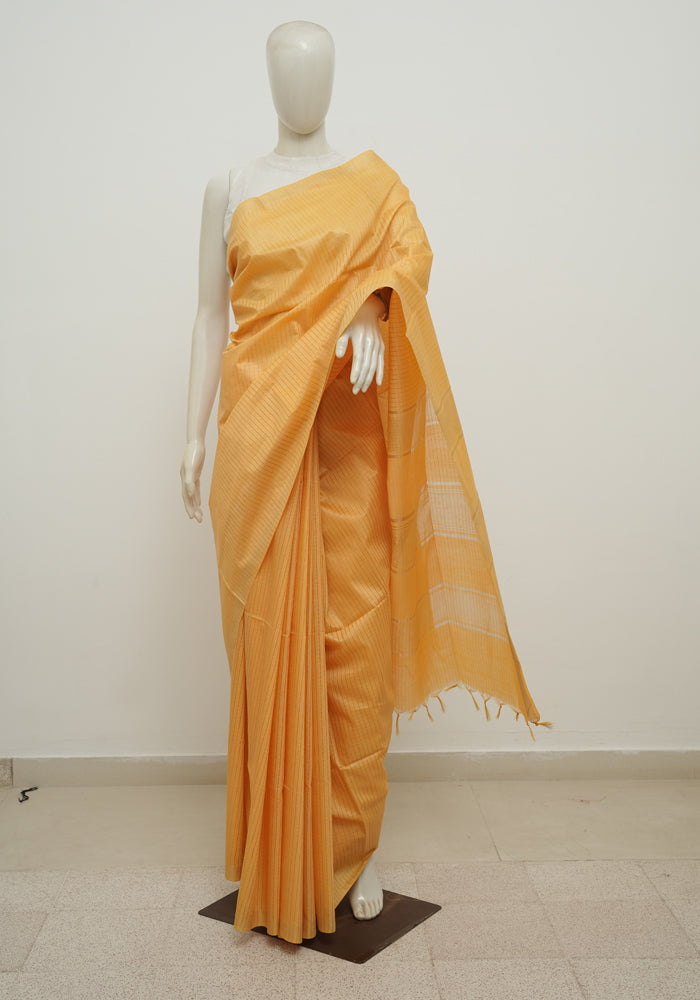 Yellow Moonga Semi Tussar Saree With Printed Kalamkari Blouse is OUT OF STOCK currently and available on pre-payment only. Order now for delivery within 2 weeks.