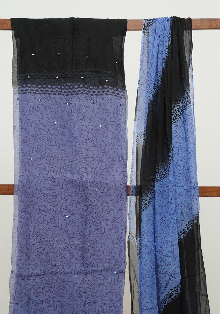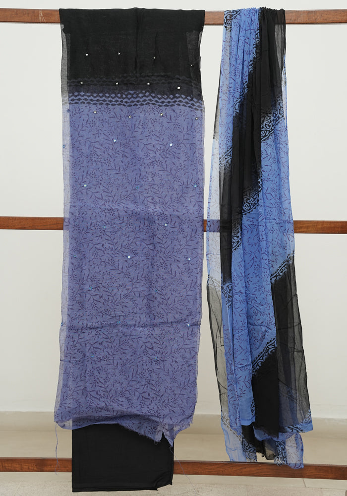 Cobalt Blue and Black Unstitched Super Net Salwar Set With Mirror Work is OUT OF STOCK currently and available on pre-payment only. Order now for delivery within 2 weeks.
