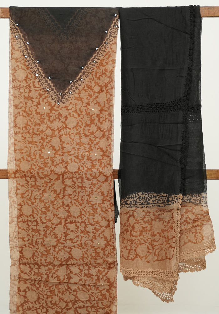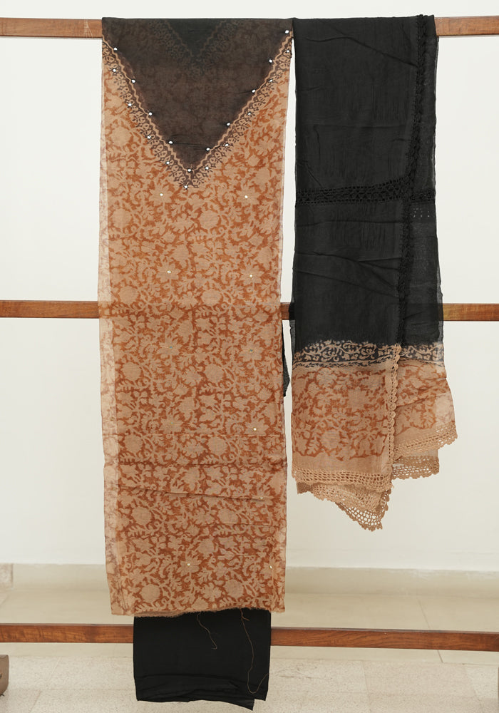 Light Brown and Black Unstitched Super Net Salwar Set With Mirror Work is OUT OF STOCK currently and available on pre-payment only. Order now for delivery within 2 weeks.