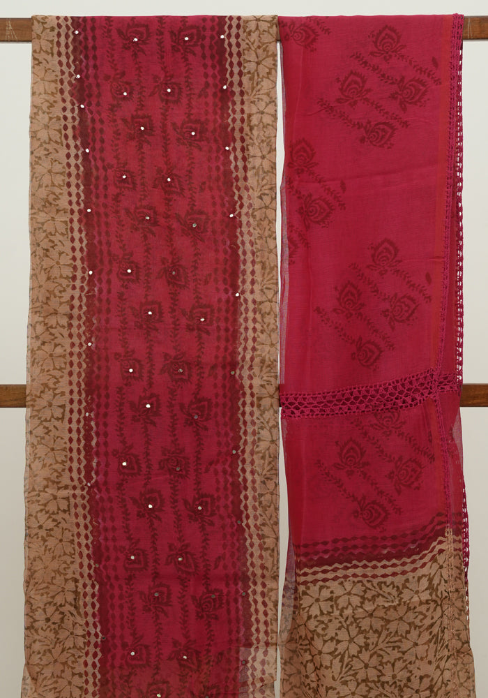 Desically Ethnic brings to you our newest offering, Unstitched Block Printed Salwar Sets. All our desgins are one of kind and they come as a 3 pc set - Top, Bottom and Dupatta.