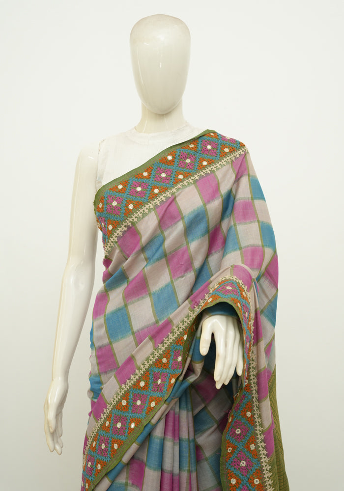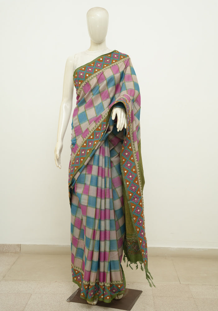 Multi Coloured Tussar Silk Saree with Kutch and Mirror work