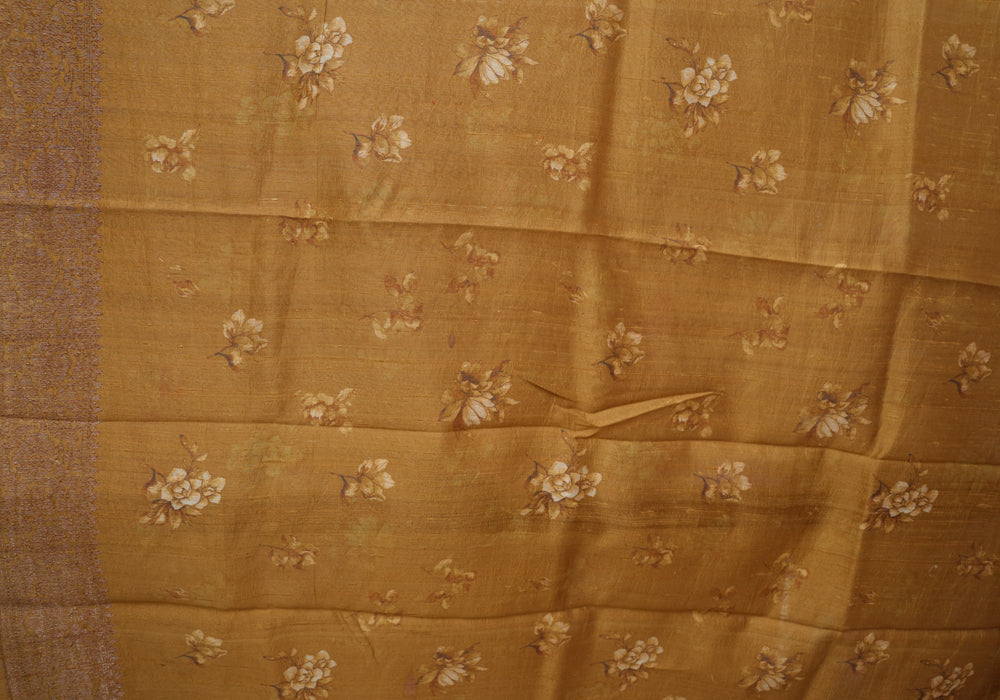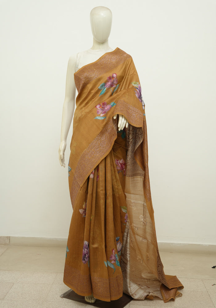 Mustard Yellow Tussar Benarasi Saree With Digital Print