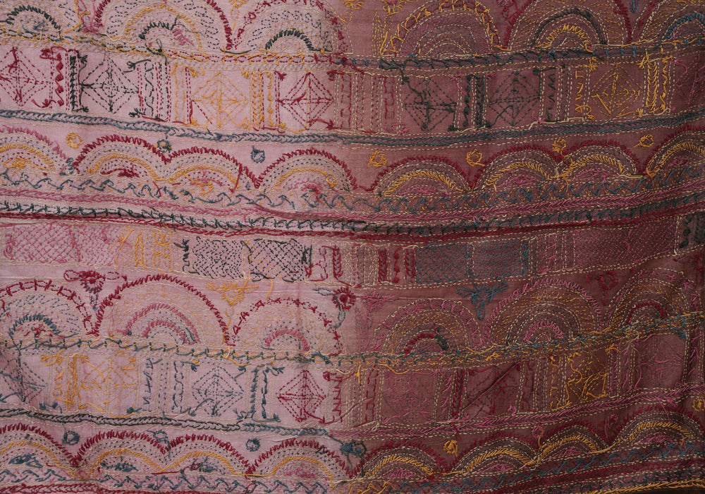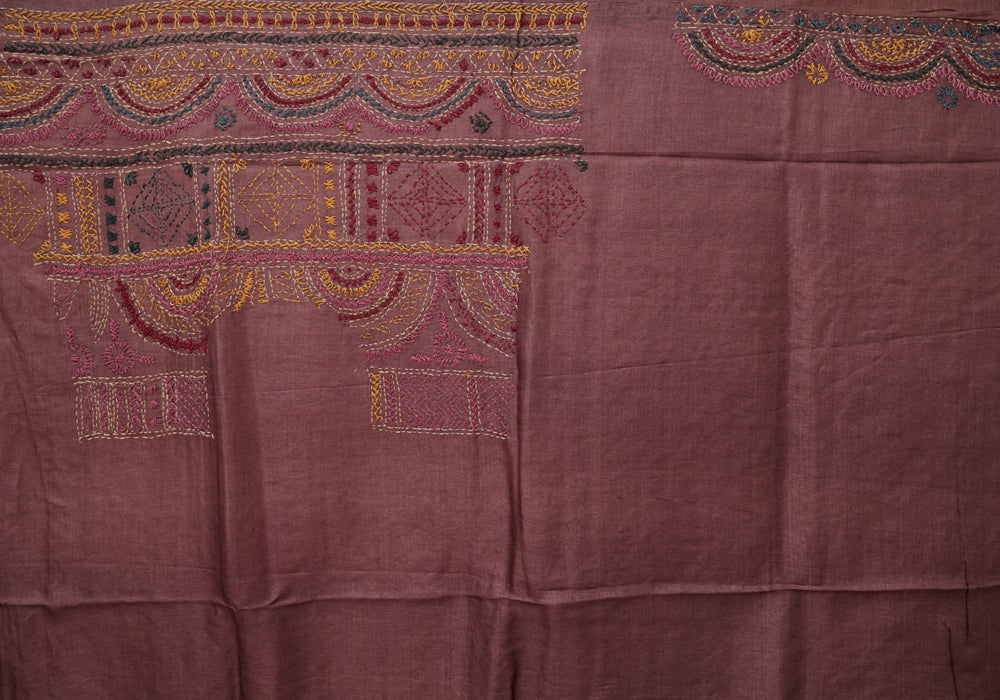 Onion Pink and Brown Tussar Silk Saree with Lambani Embroidery is OUT OF STOCK currently and available on pre-payment only. Order now for delivery within 2 weeks.