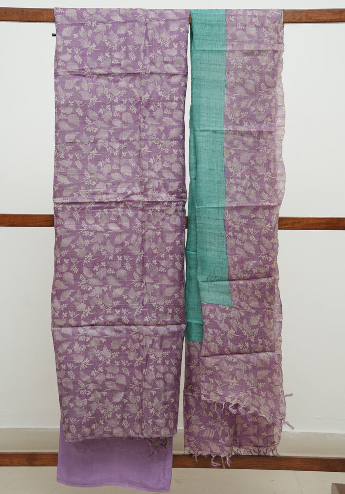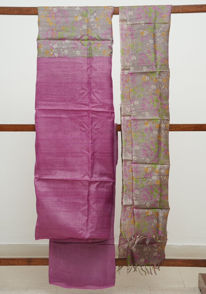 Purple Tussar Silk Unstitched Salwar Set With Digital Print