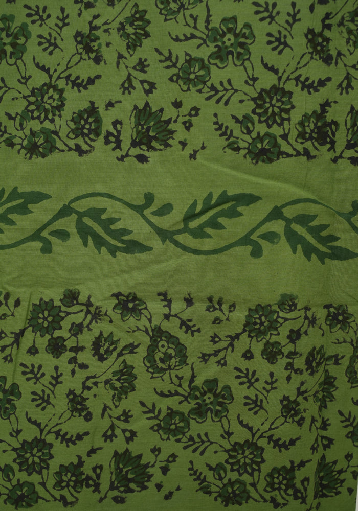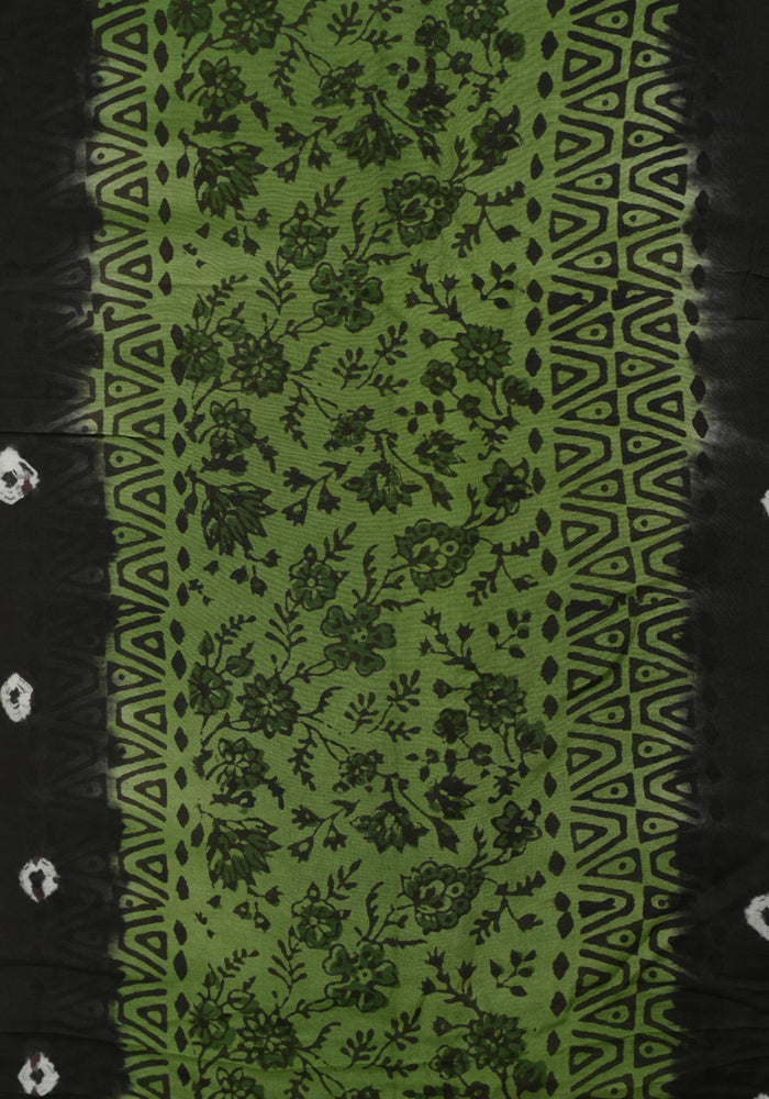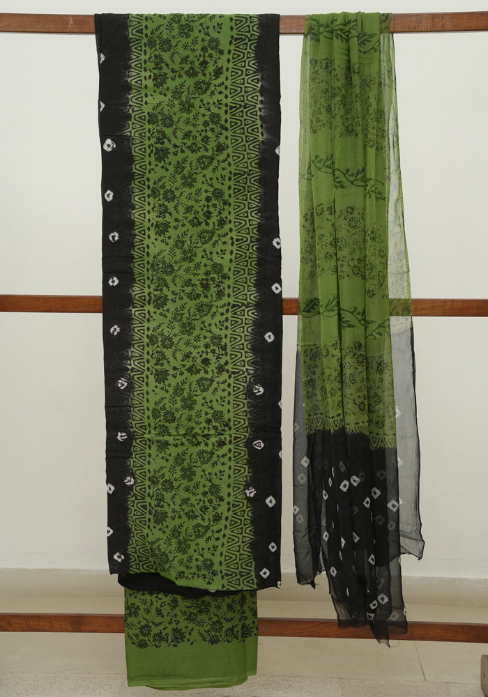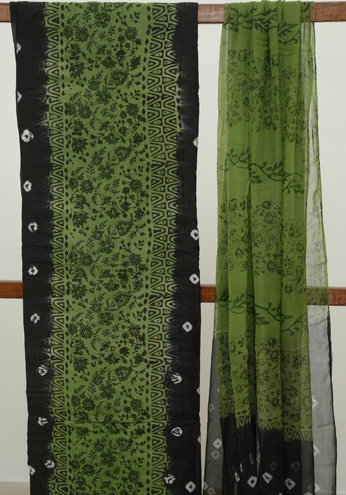 Black and Mehandi Green Unstitched Block Printed Muslin Salwar Set With Bandini