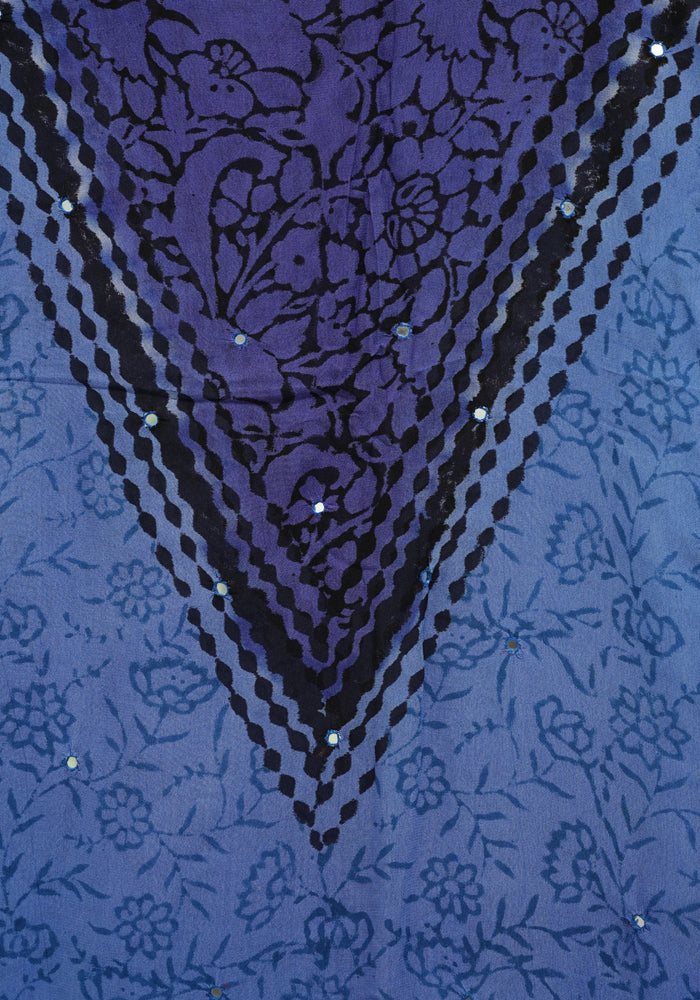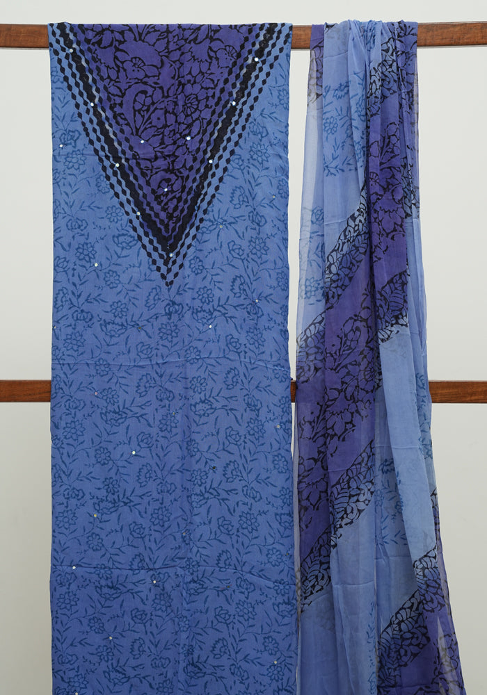 Cobalt Blue and Blue Unstitched Georgette Salwar Set with Mirror Work is OUT OF STOCK currently and available on pre-payment only. Order now for delivery within 2 weeks.