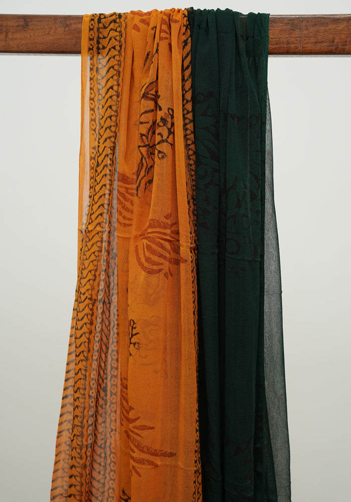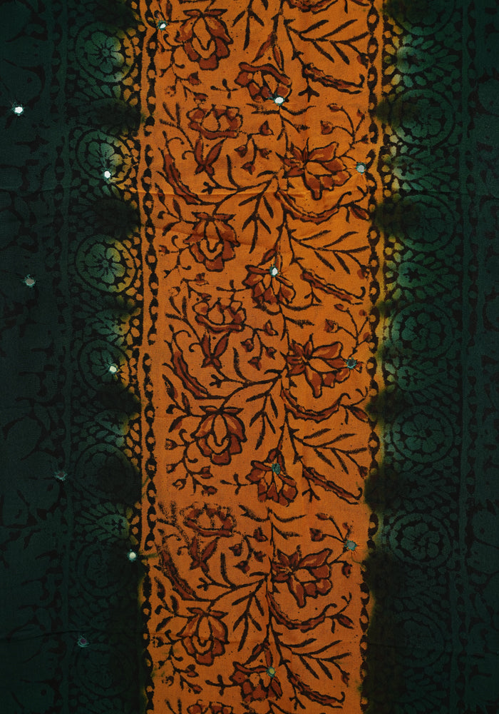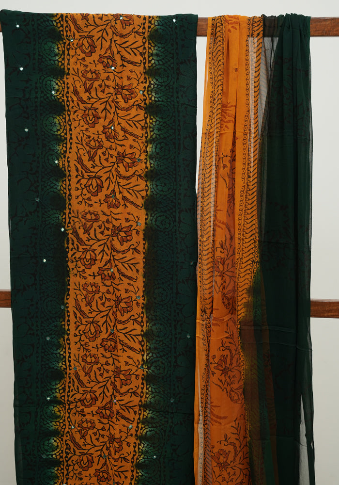 Dark Green and Mango Yellow Unstitched Georgette Salwar Set with Mirror Work
