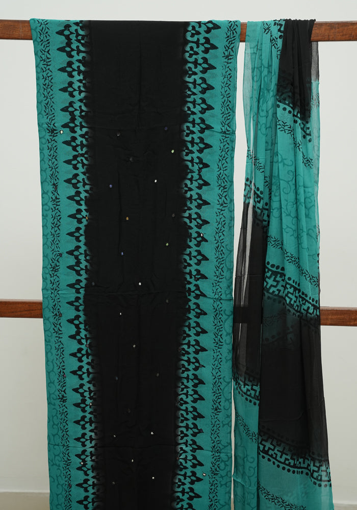 Green and Black Unstitched Georgette Salwar Set with Mirror Work