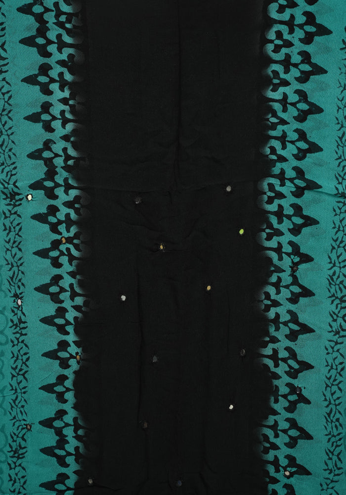 Green and Black Unstitched Georgette Salwar Set with Mirror Work is OUT OF STOCK currently and available on pre-payment only. Order now for delivery within 2 weeks.