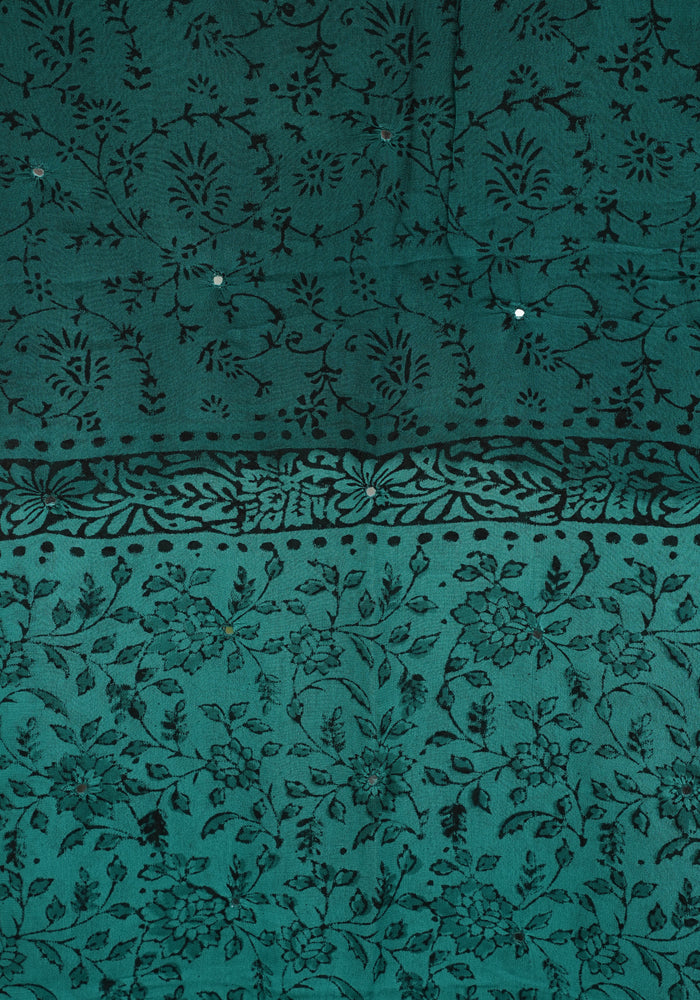 Green and Dark Green Unstitched Georgette Salwar Set with Mirror Work