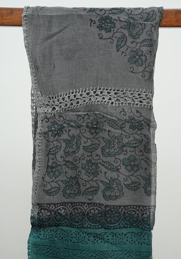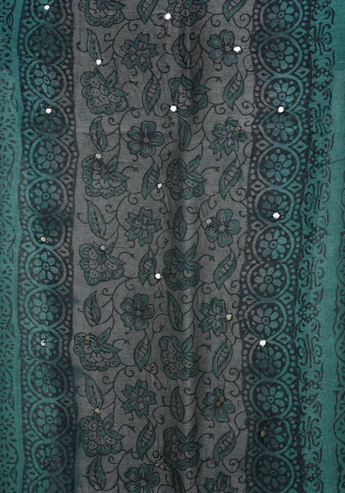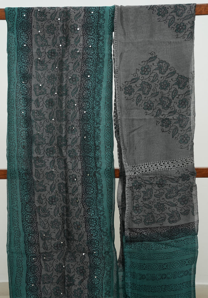 Grey and Teal Green Unstitched Super Net Salwar set With Mirror Work