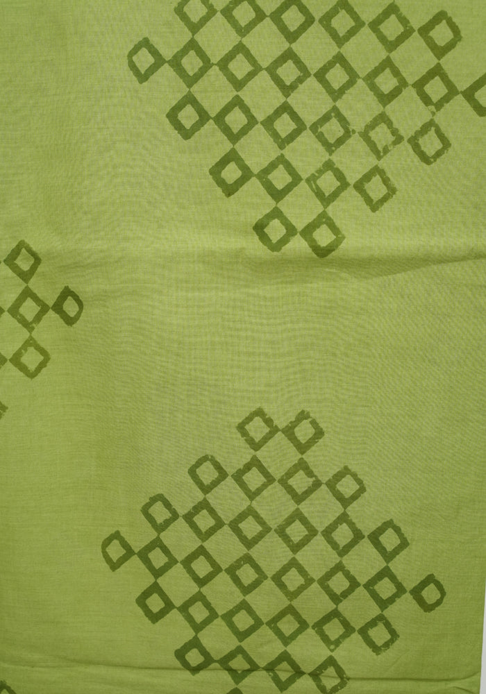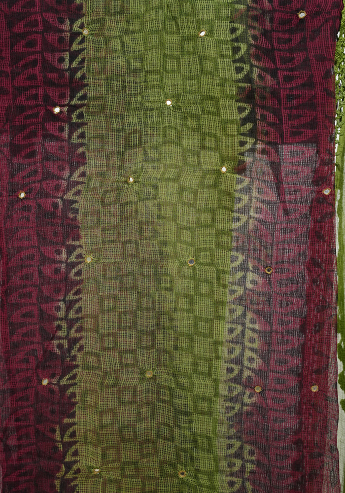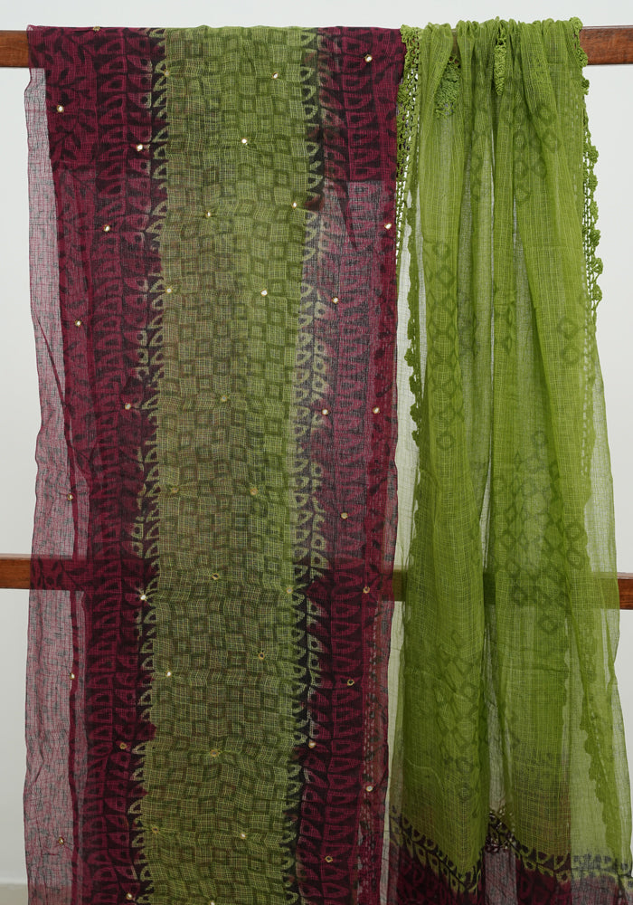 Jamun Red and Parrot Green Unstitched Block Printed Kota Salwar Set With Crochet Dupatta